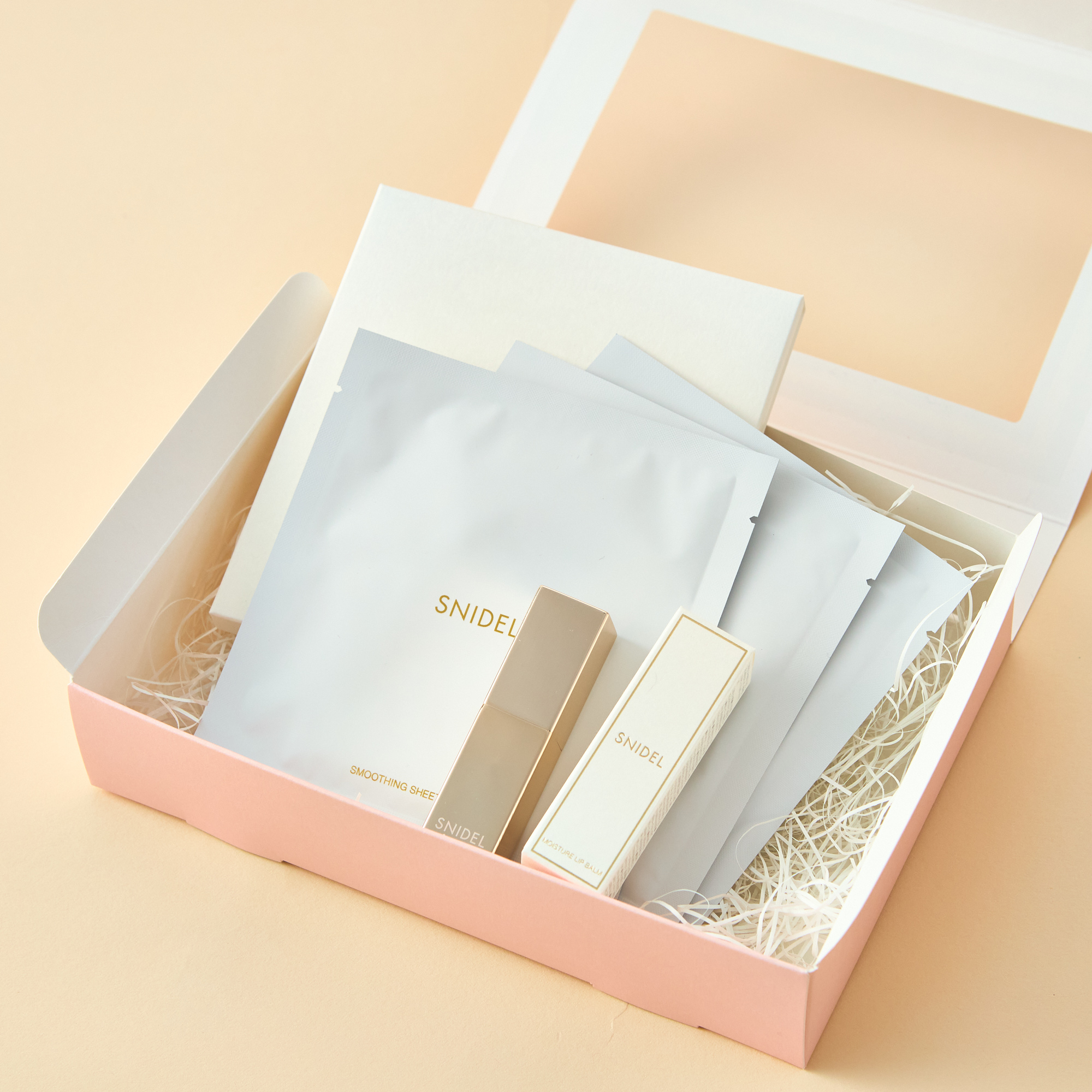静かな決意を輝きと透明感に込めた「SNIDEL BEAUTY(スナイデル ビューティ)」のリップバームとシートマスクをセットにしました。
