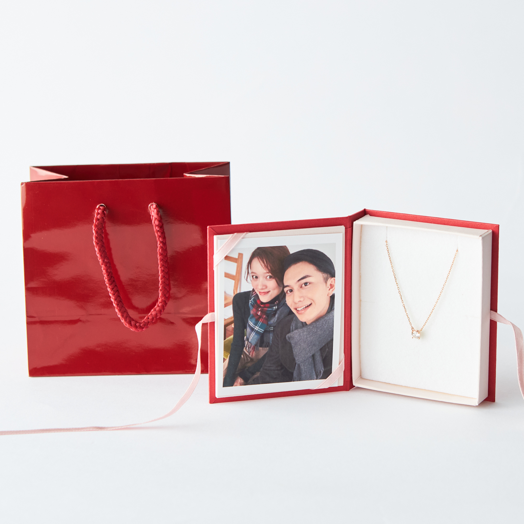 上品なデザインの一粒ネックレスを、思い出の写真をパーソナライズできるジュエリーボックスに納めてお届けします。 スタンド型のため、贈った後もお部屋などに飾っていただけます。 大切な方への特別な贈り物へおすすめです。 思い出を形に、記憶に残るギフト。 ※お好きなお写真を購入画面にてアップロードしてください。 ※写真を入れずにお届けすることも可能です