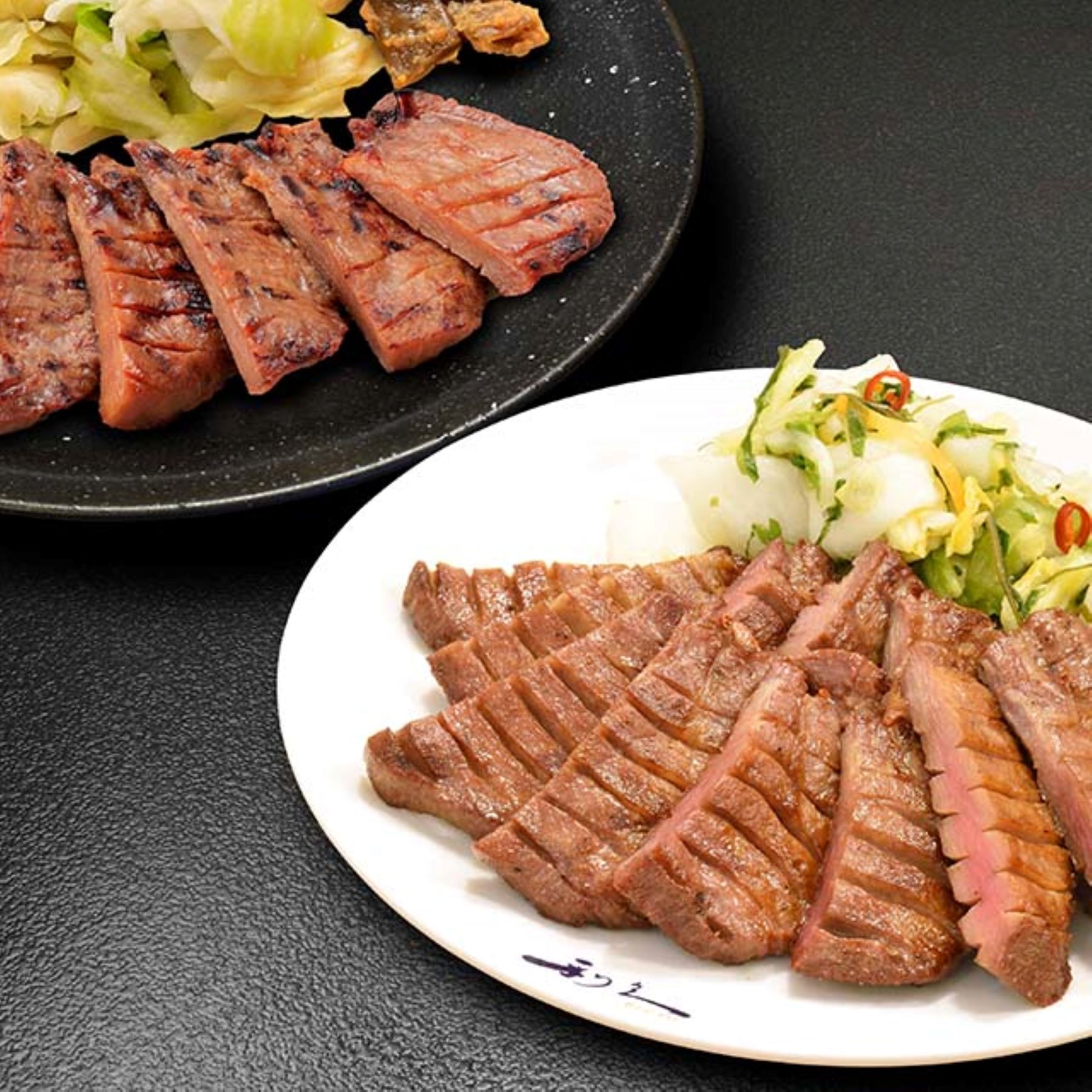 仙台名物「牛たん焼」定番の塩味です。 牛たんの大きさを見ながらひとつひとつ包丁で柔らかい部分のみを切り分け、丁寧にスライスし、両面に切れ目を入れます。 味が馴染みやすく柔らかく噛み切りやすいような工夫を凝らします。 そして、手振りで塩をふり、大きさ・厚みを見ながら塩加減を調整する熟練の職人による味付けで仕上げます。