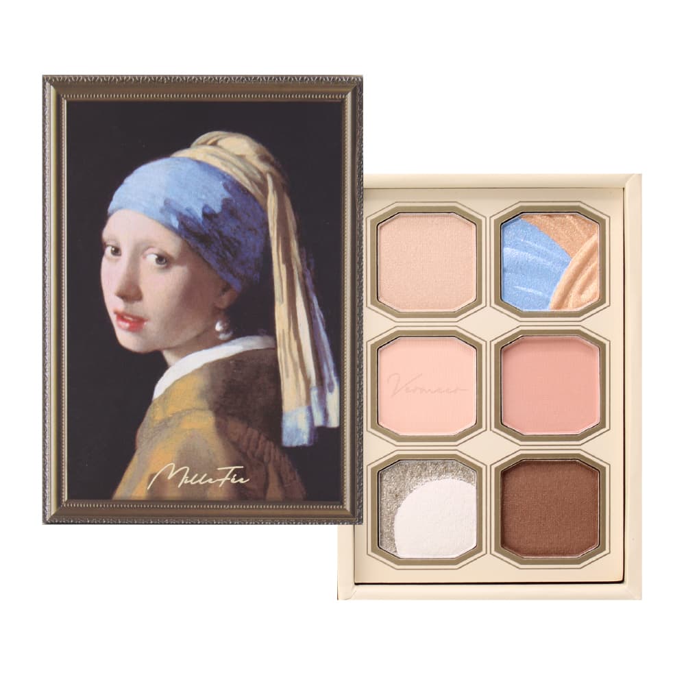 ブック型のアイシャドウパレット。ケースからアイシャドウを取り出すと、まるで美術館に訪れたような精巧な油絵が目に飛び込む。一度、本を開けば名画の世界に。