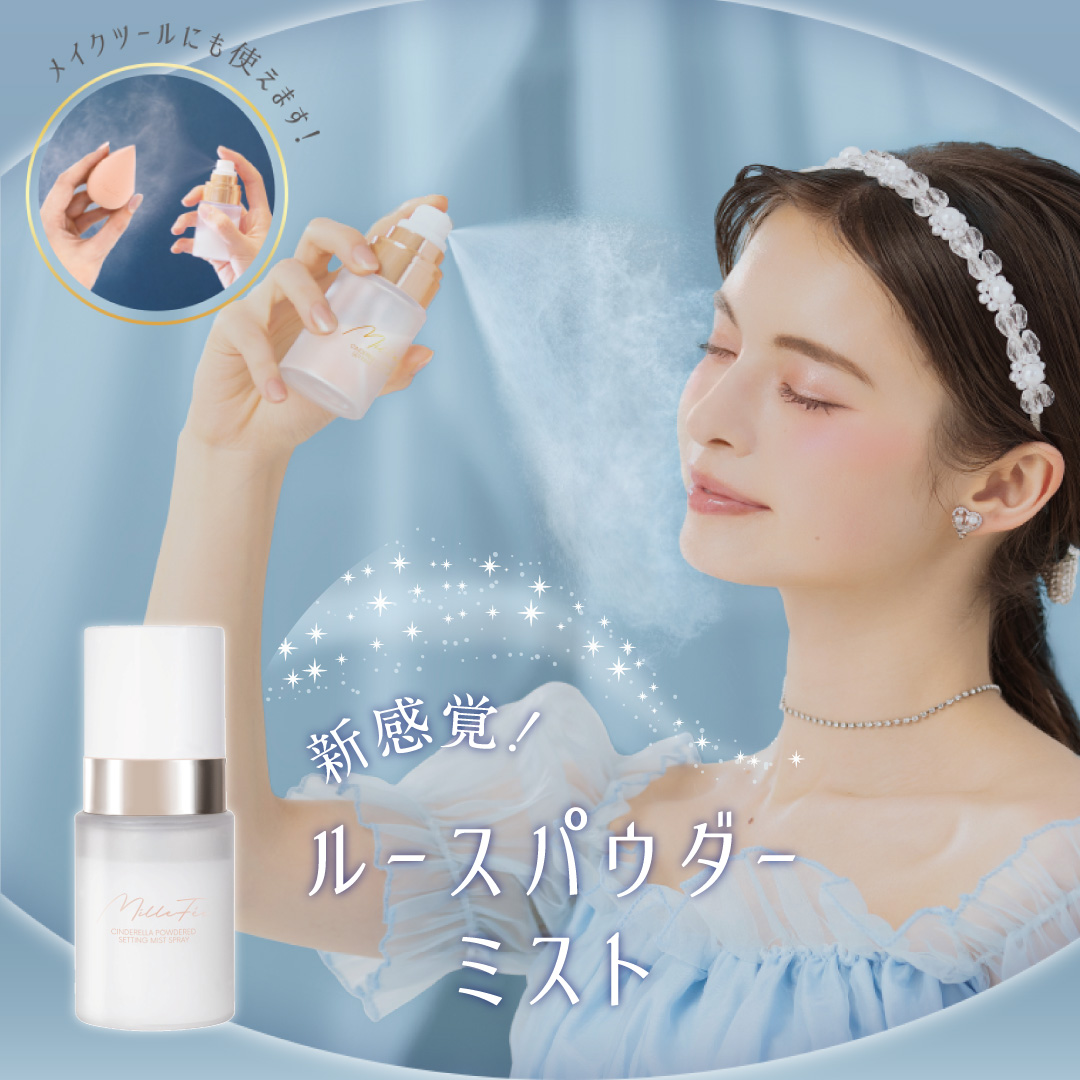 【サラサラミスト】メイクキープパウダーミストで纏う、色褪せない魔法。パウダー配合の超微細ミストが顔全体にふんわり広がり、ベタつかずサラサラ!