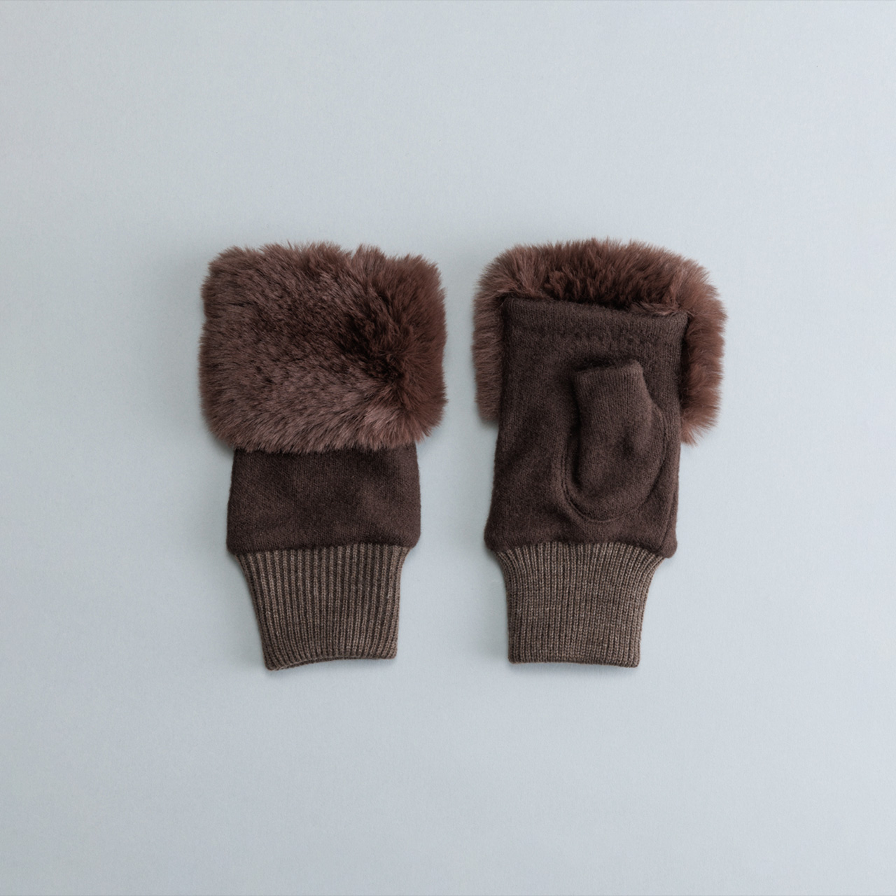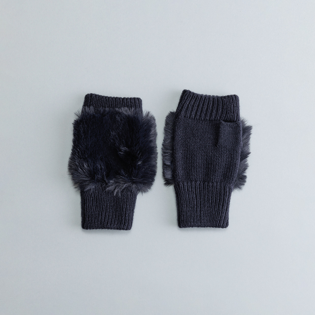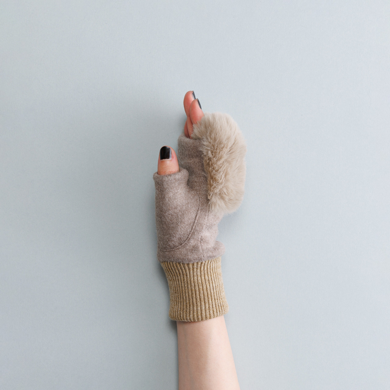 ふわふわのフェイクファーが指先を飾る、上品なフィンガーレスグローブ。エレガントな装いに最適です。