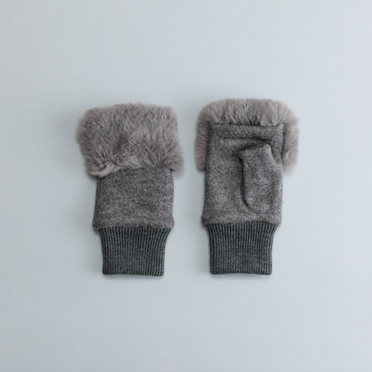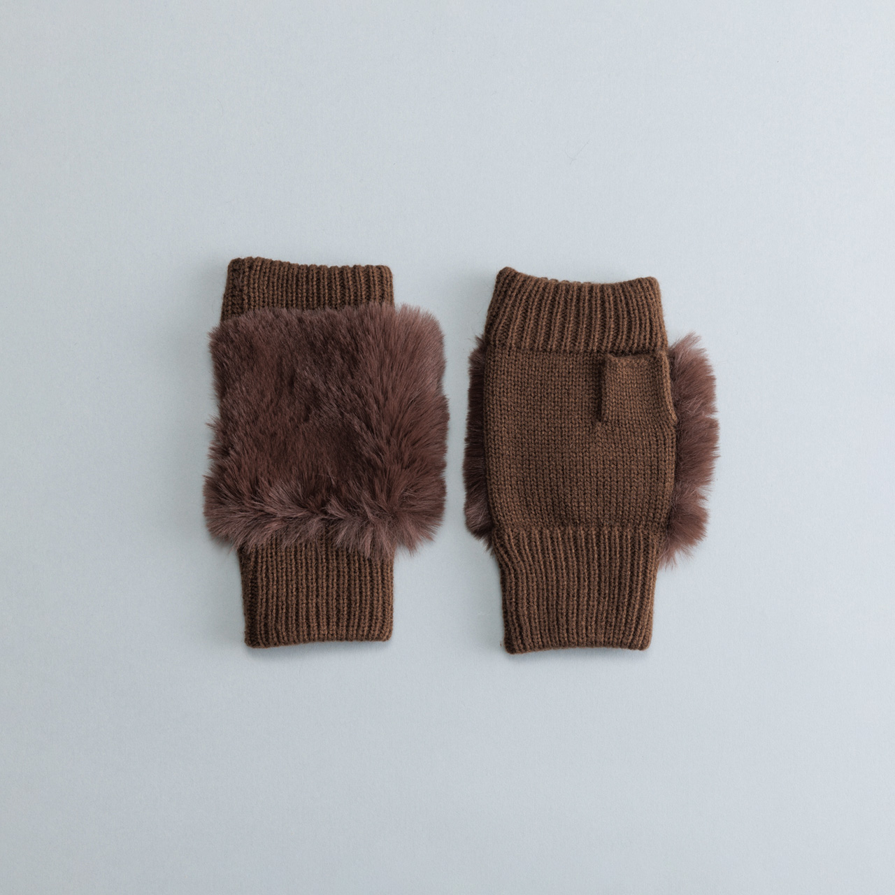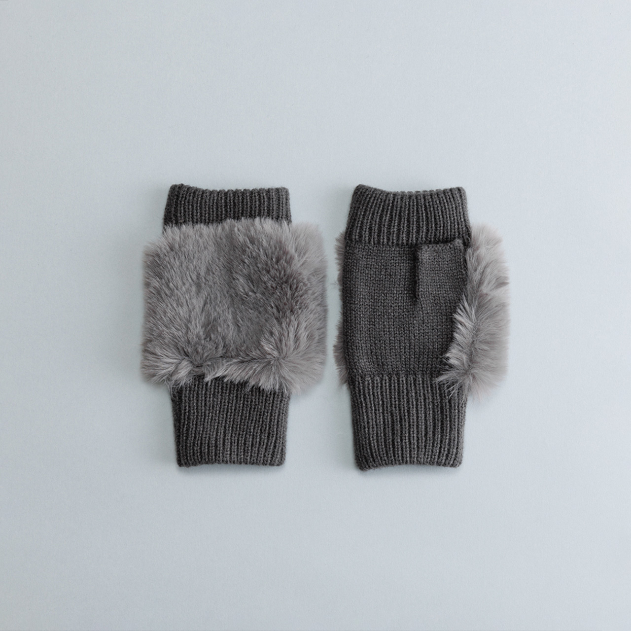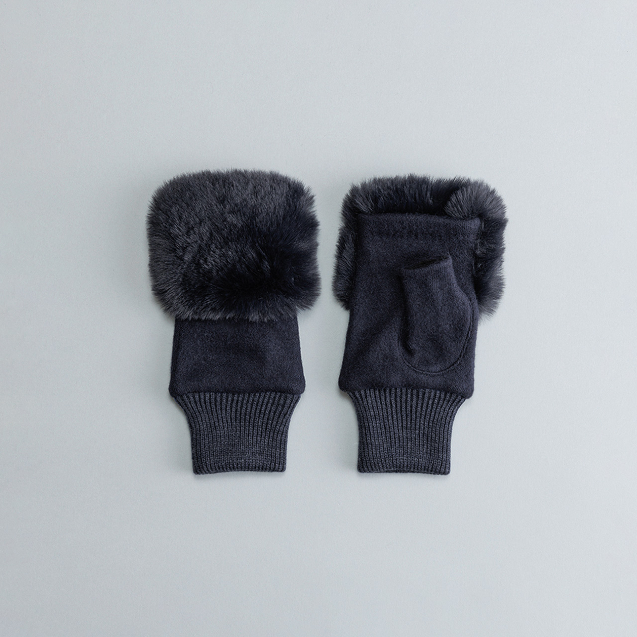 ふわふわのフェイクファーが指先を飾る、上品なフィンガーレスグローブ。エレガントな装いに最適です。