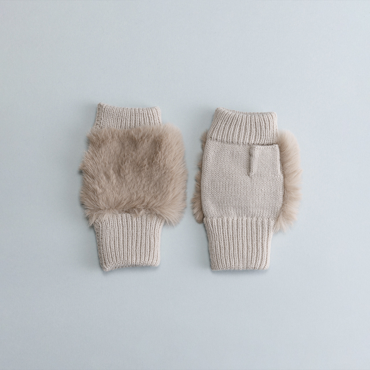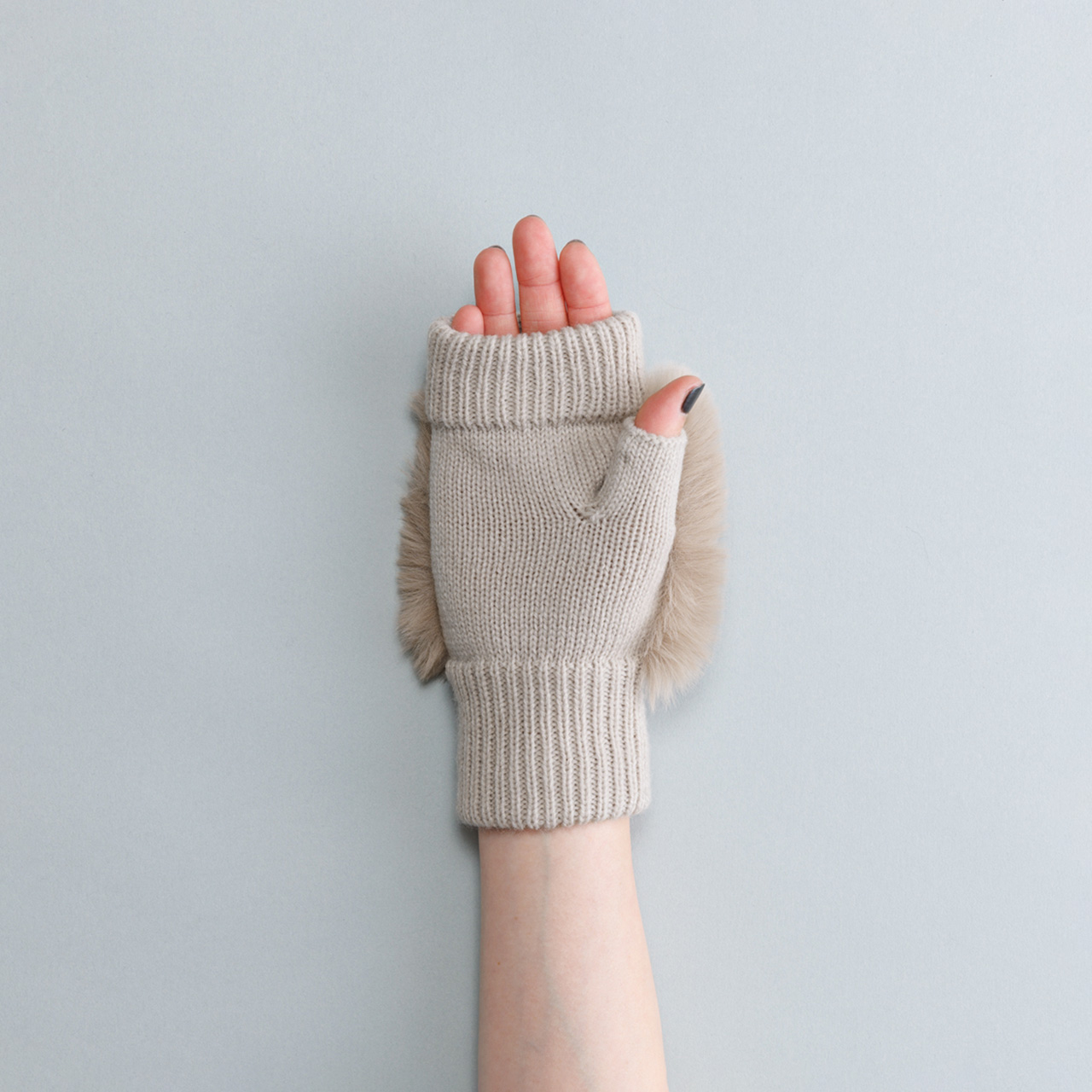 | フェイクファー付きフィンガーレスニットグローブ | 【外装サイズ】 幅14cm × 縦22cm × 4cm 【素材/繊維】 アクリル100% ファー部:ポリエステル100% 【お手入れ方法】 乾いた布で汚れを拭き取り、陰干しをしてください。 【サイズ】 21 - 22 cm |