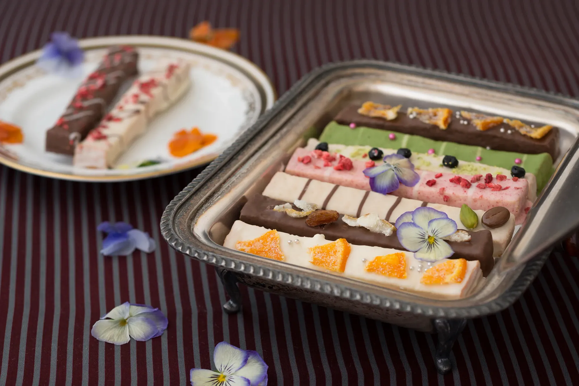 大口注文・法人のお問い合わせはこちら低温でじっくり焼き上げたサクサクのパンドゥミーにチョコレートをコーティング。 手のひらサイズのキューブラスクに、お花やフルーツで彩り豊かにデコレーション。 小さいけれど“かわいい”がぎゅっと詰まっています。