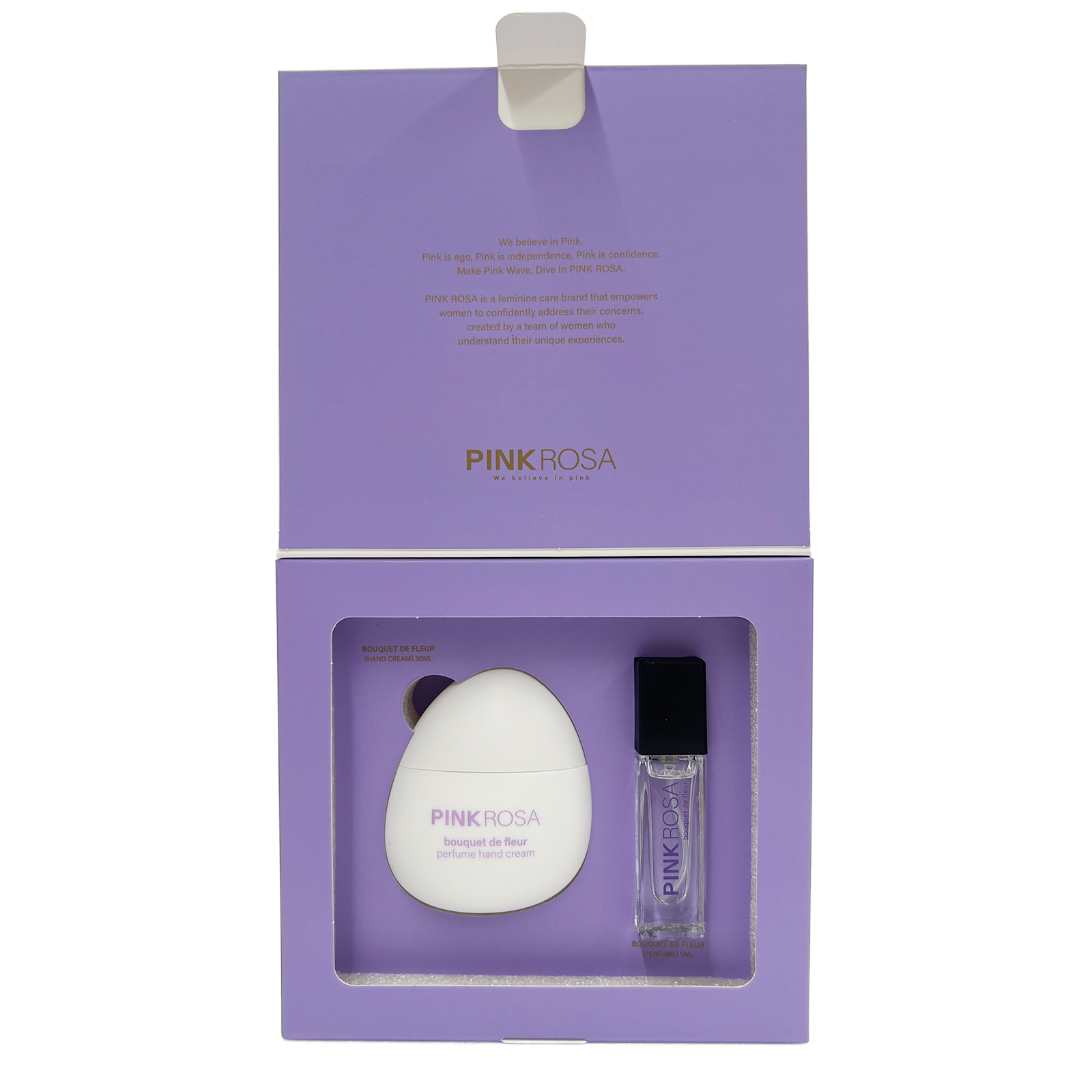 韓国発のブランド「PINKROSA(ピンクロサ)」からギフトにぴったりなパフュームとハンドクリームのセットをお届け。バッグに忍ばせておけば、出先でも手軽にお気に入りの香りが楽しめます。気持ちをリフレッシュさせる自分用のギフトとしてもおすすめです。