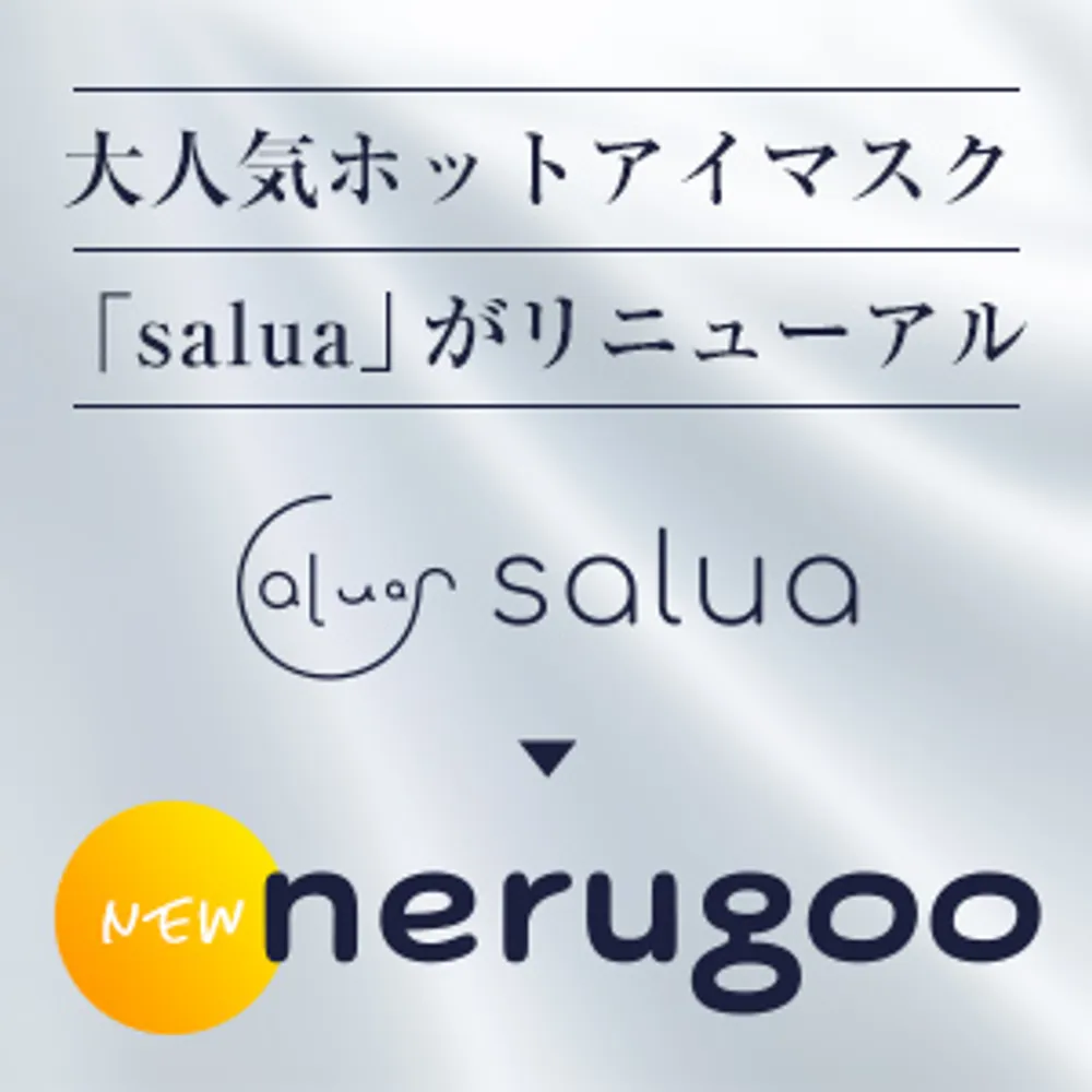 テレビや雑誌でも紹介された大人気ホットアイマスク「salua」が、「nerugoo(ネルグー)」にブランドリニューアルしました! ※ロゴが最新のものと異なっております。