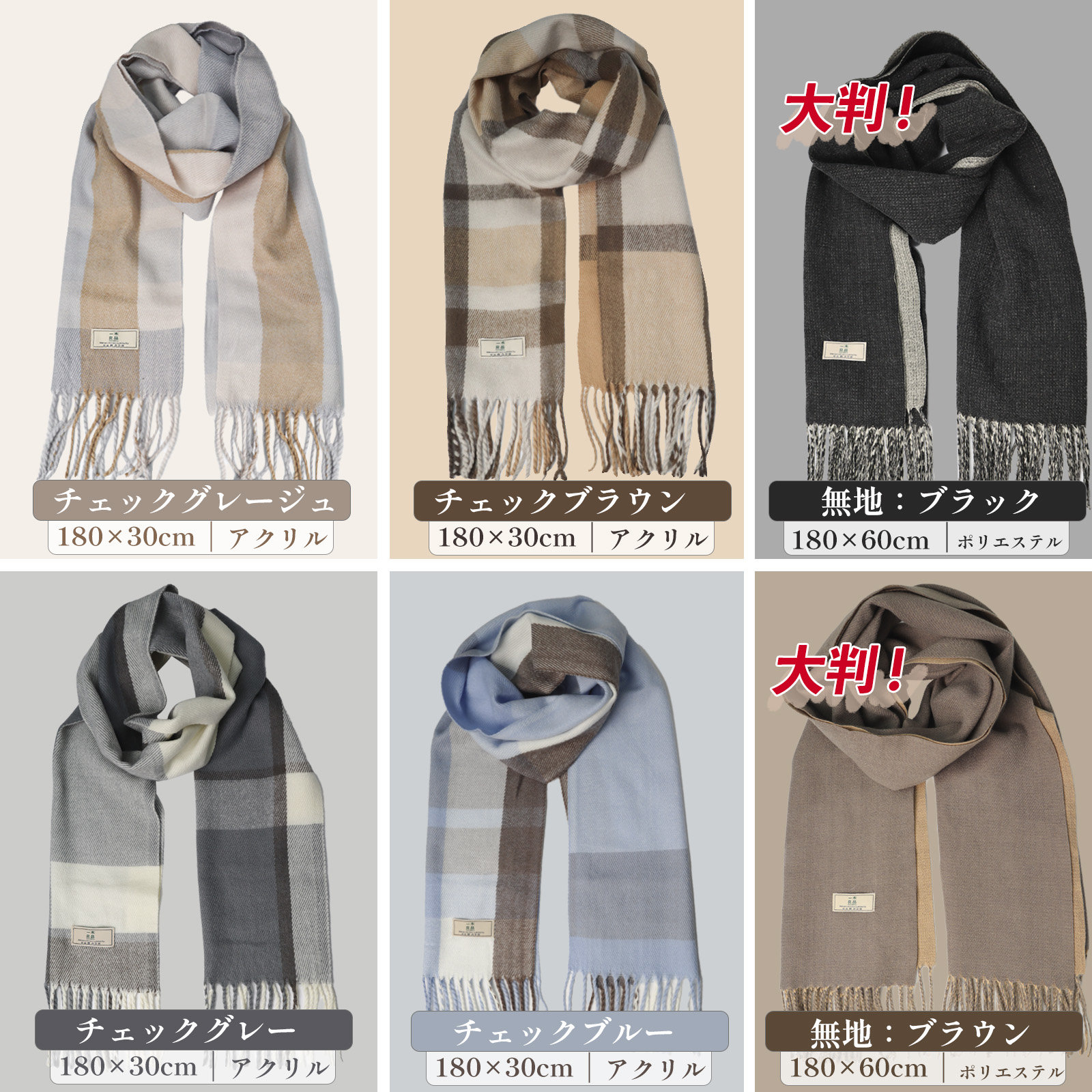 | 商品サイズ | 【無地ブラック・無地ブラウン】 サイズ:180cm×60cm 【チェックタイプ】 サイズ:180cm×30cm |