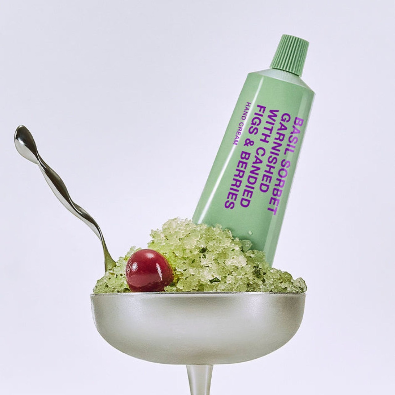 フルーティな中にスパイシーな余韻が残る、 爽やかな「バジルソルベ」の香り。体温に柔らかく溶けて肌に素早く馴染むハンドクリームです。天然由来保湿成分が肌の保護膜を形成し保湿効果が持続します。