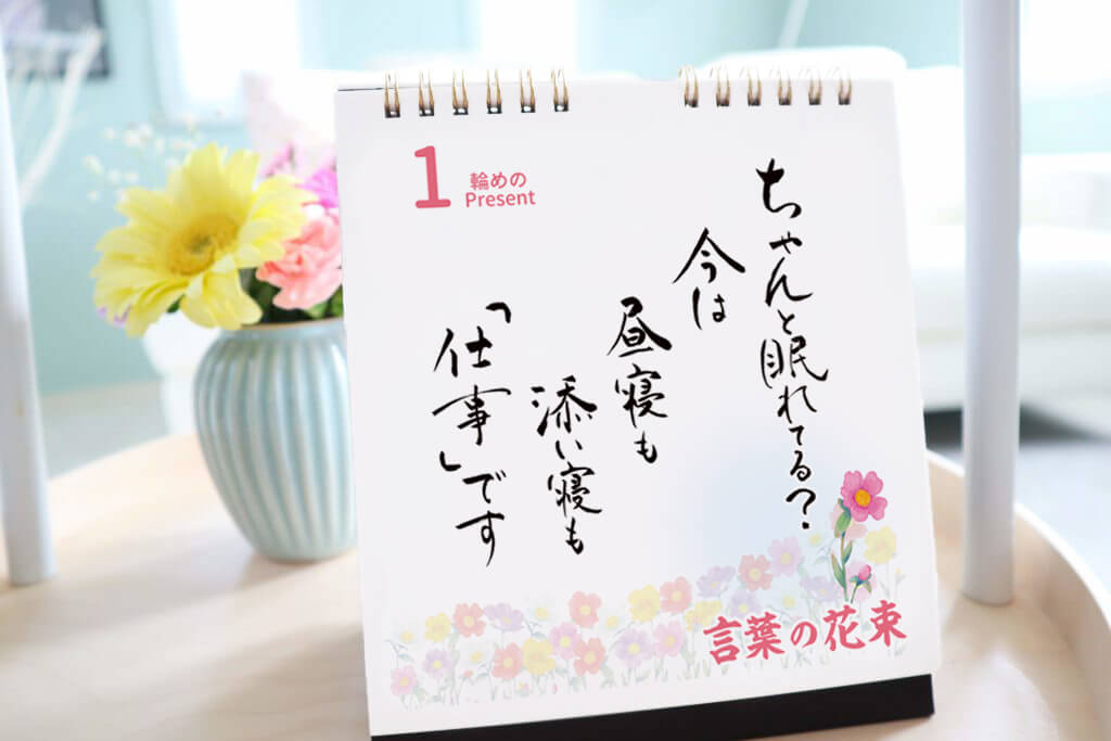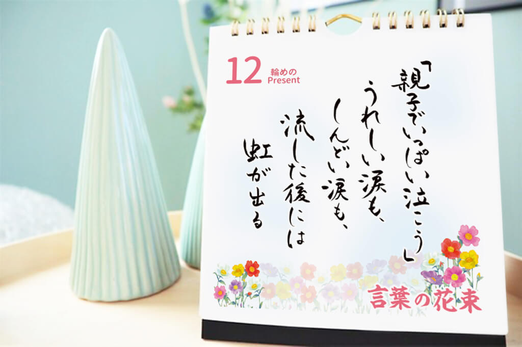 瞳には映らない心を、見えるカタチにし、活字として命を吹き込む。 たとえ側にいれなくても、遠く離れて住んでいても、あったかい想いがいつもすぐそこにあるような「言葉の贈りもの」をコンセプトに活動しております。 ・2018年に日めくりカレンダー「お父さんに感謝」が誕生 ・翌年2019年に「お母さんに感謝」が登場 以後、祖父用、祖母用カレンダーとシリーズが増え、「気の利いた贈り物」として多くの方にお喜びいただいていおります。 2025年にもさらに新作の発売を予定しています。