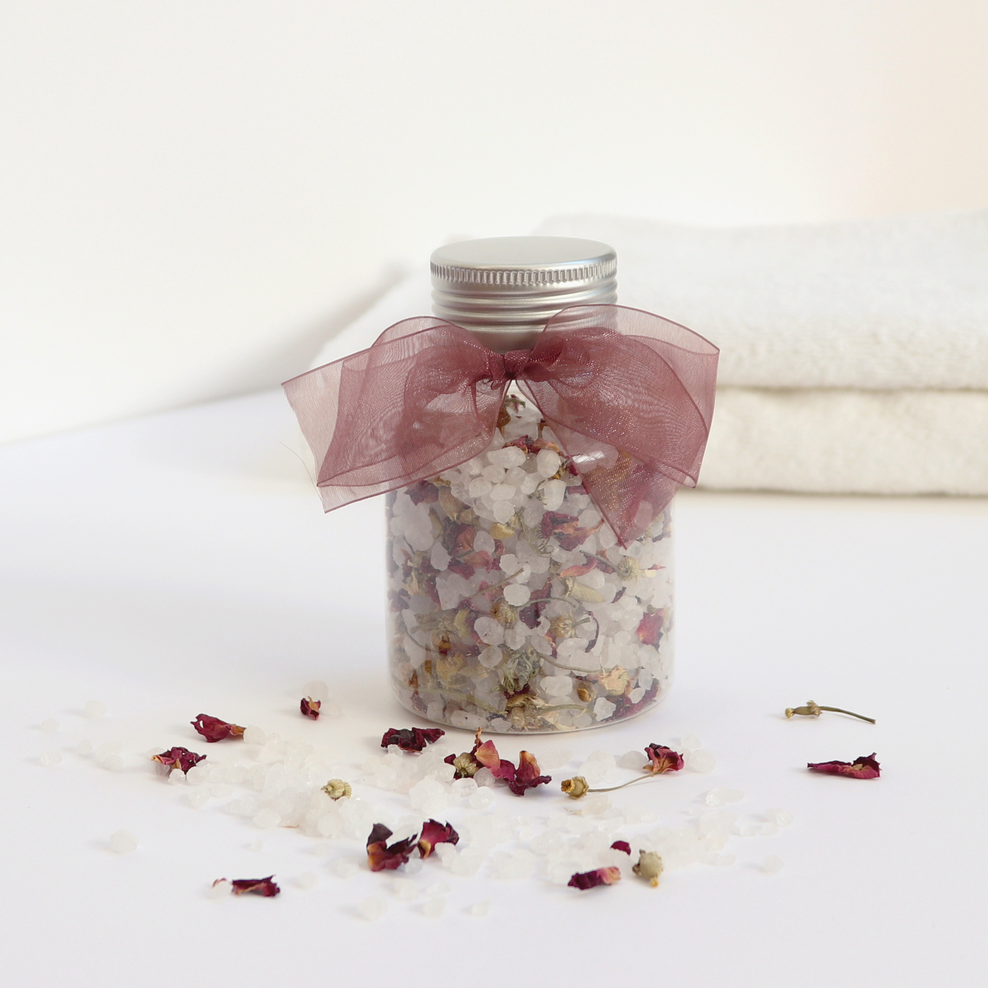 贈り物としても人気の高いバスソルト。 可憐な香りがもたらす癒しのひと時が、心と体を穏やかにほぐしてくれます。