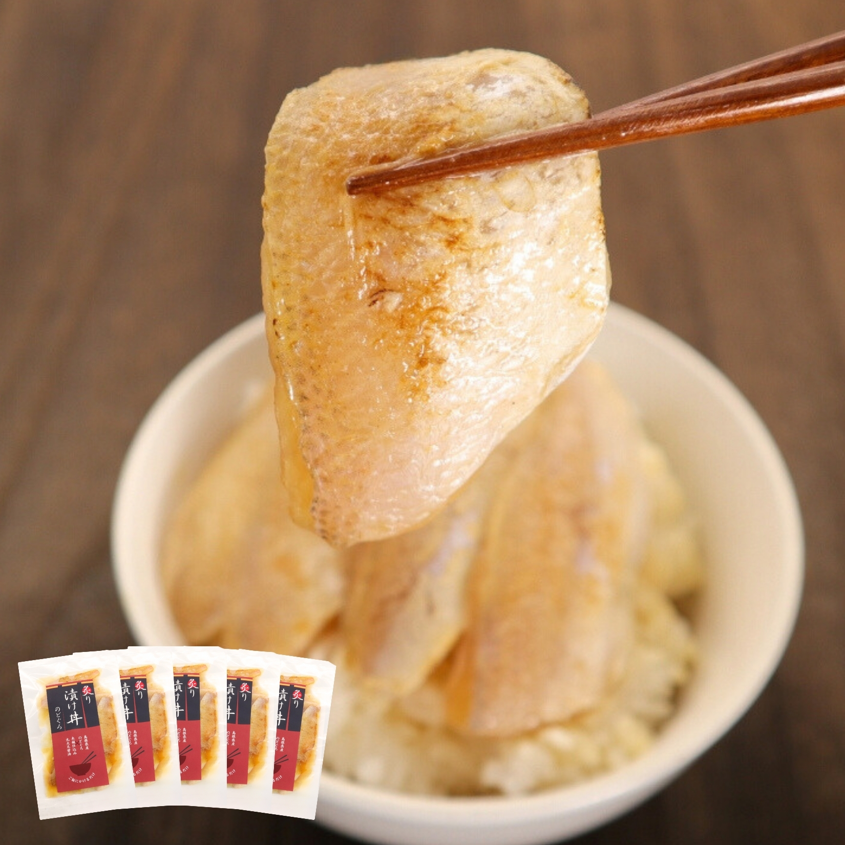 素材そのものを重要視。島根県産のノドグロの鮮度と脂の甘さという素材を活かすため、醤油タレをこだわりました。島根県奥出雲町にある森田醤油(木桶仕込み国産丸大豆しょうゆ)を使用しています。大人向けの上品な漬け丼の5食セットです。