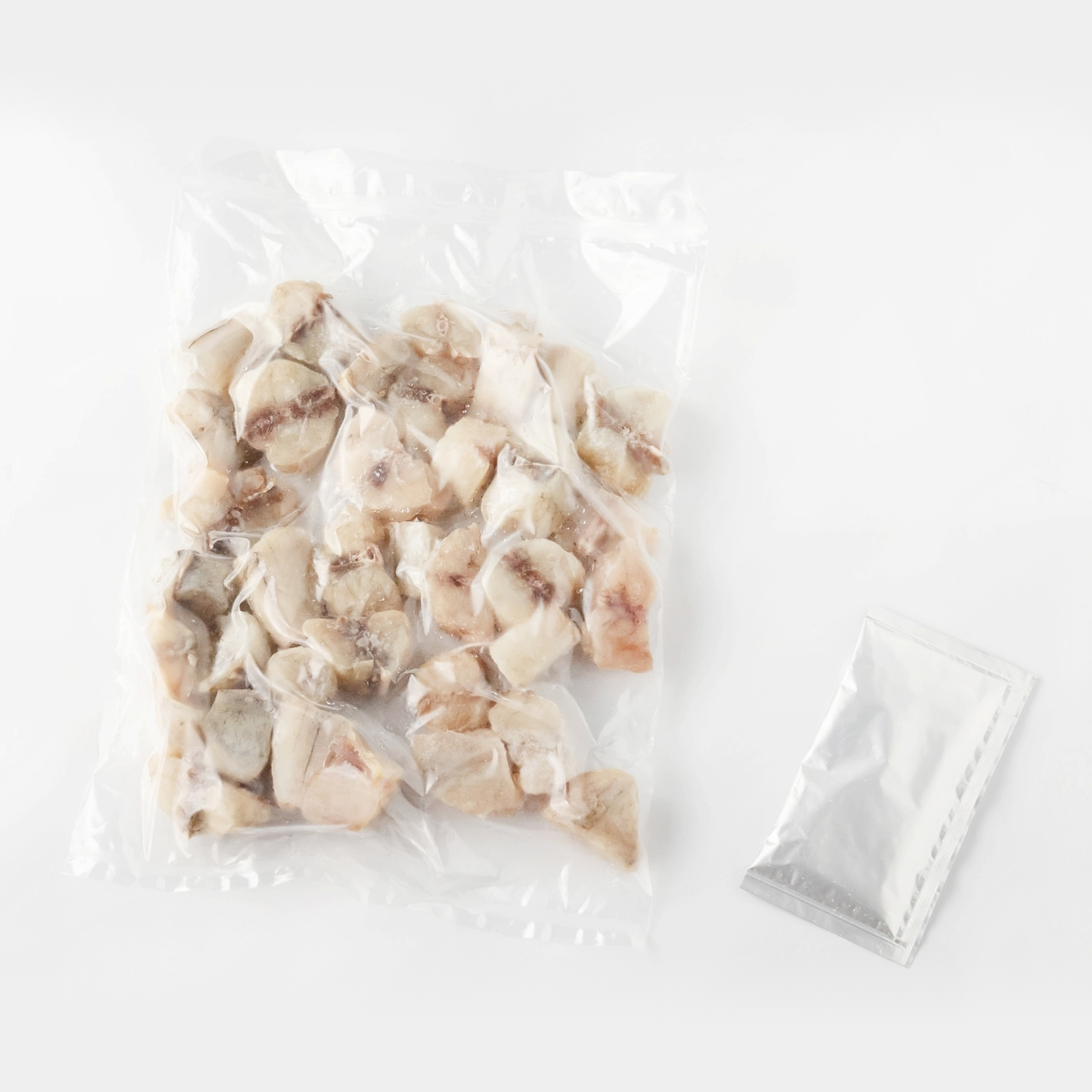 大口注文・法人のお問い合わせはこちら身が締まった状態で水揚げされた国産フグの切り身です。同封している魚介醤油ベースの鍋の素で煮込んでお召し上がりください。 みずみずしい食感のフグは、唐揚げにしても絶品です。ふぐ鍋と合わせてお楽しみください。