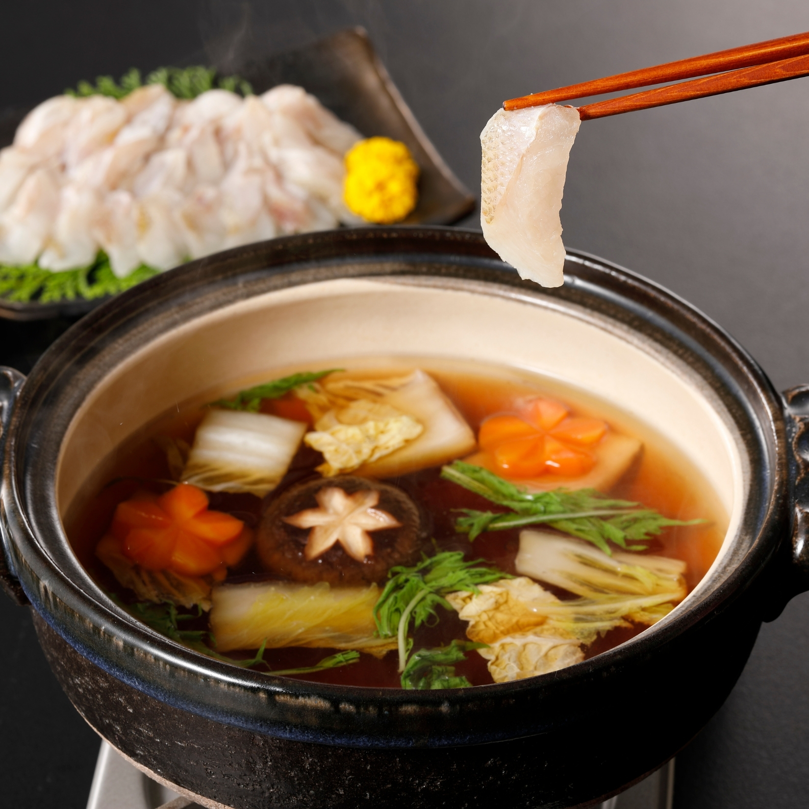 ノドグロのとろけるような脂のり、上質な甘さを備えた身を、特製の鍋つゆ「だし薫る極みつゆ」にくぐらせることでさらに濃縮したノドグロの旨みをご堪能いただけます。