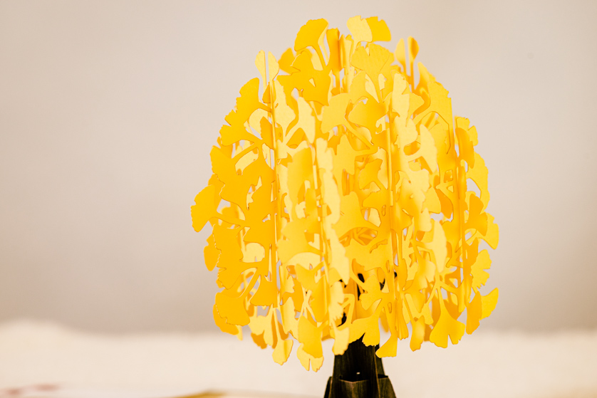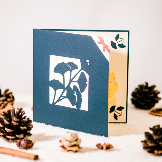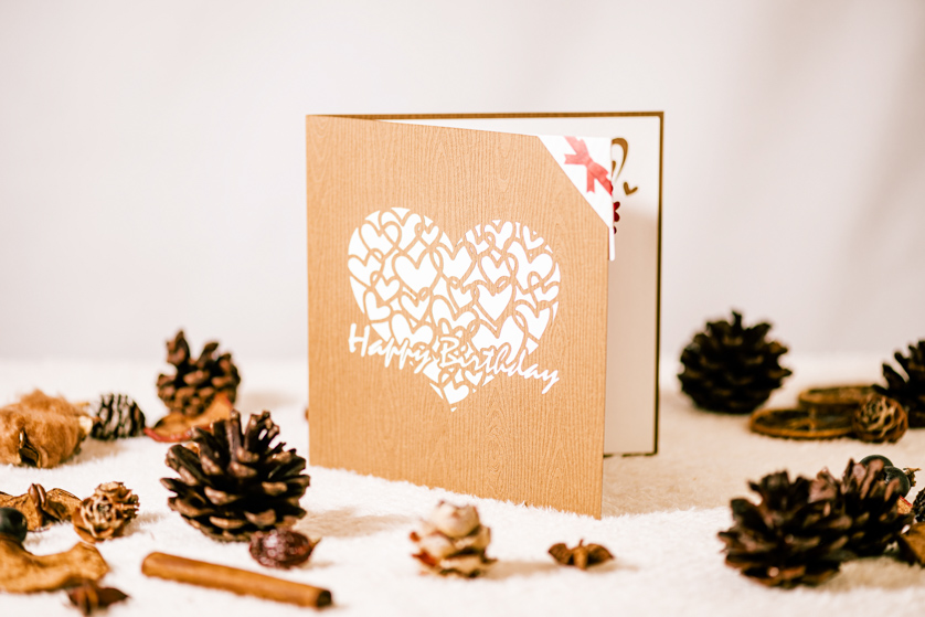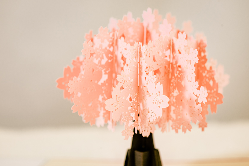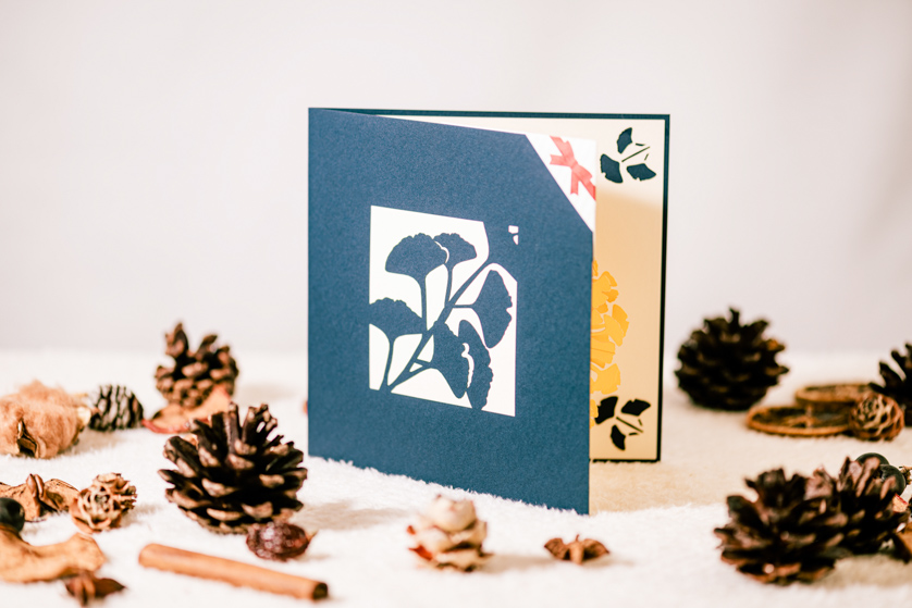 繊細なカッティングで、美しい3D POP UPカードに動きを与えてくれます。カードを開くと、花びらや葉っぱが落ち、メッセージを華やかに彩ります。
