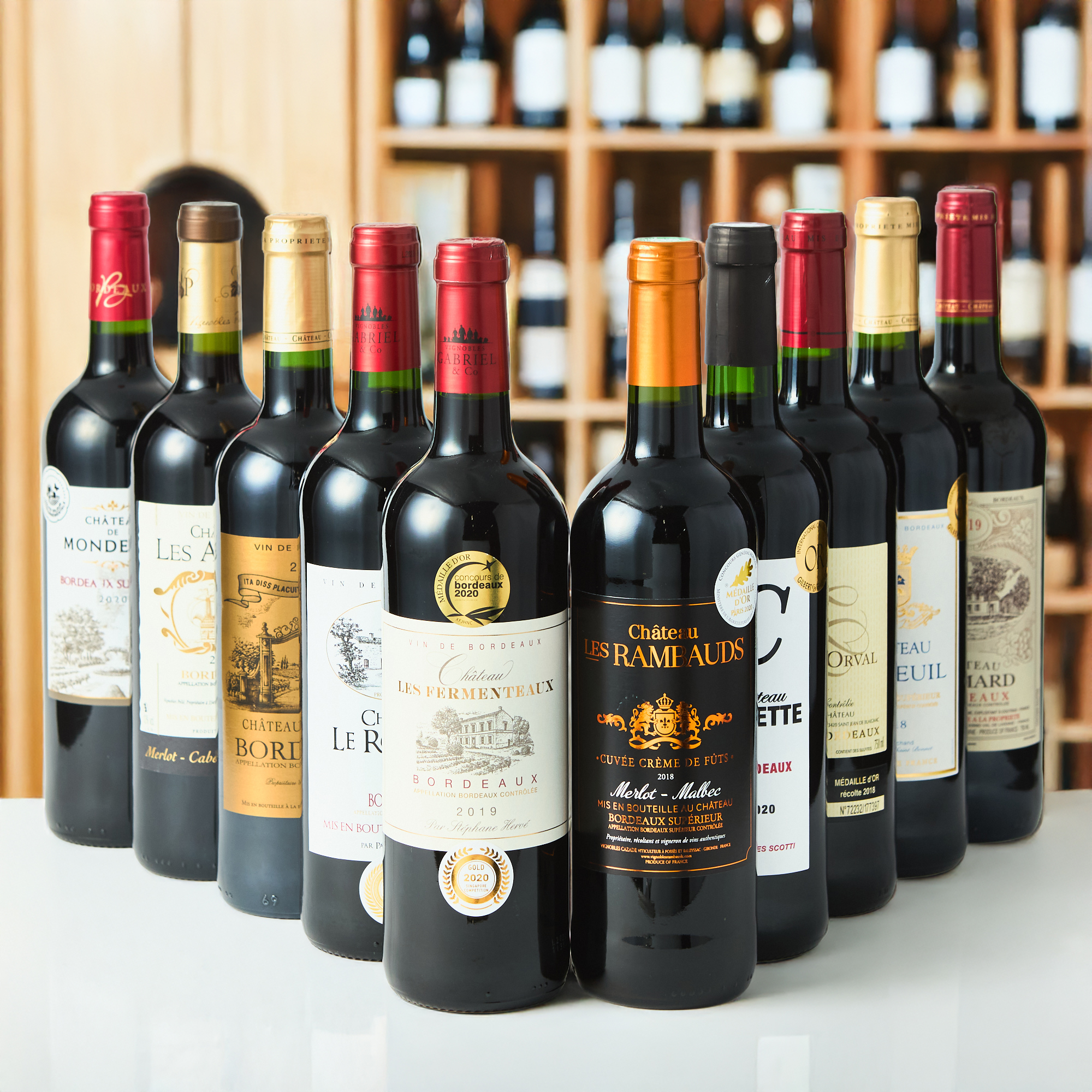 大口注文・法人のお問い合わせはこちらコンクールで金賞を受賞をした、フランス・ボルドー産のワイン10種類をお楽しみいただける豪華なタンプ限定のセットです。※配送用段ボールに10本入った状態でお届けいたします。