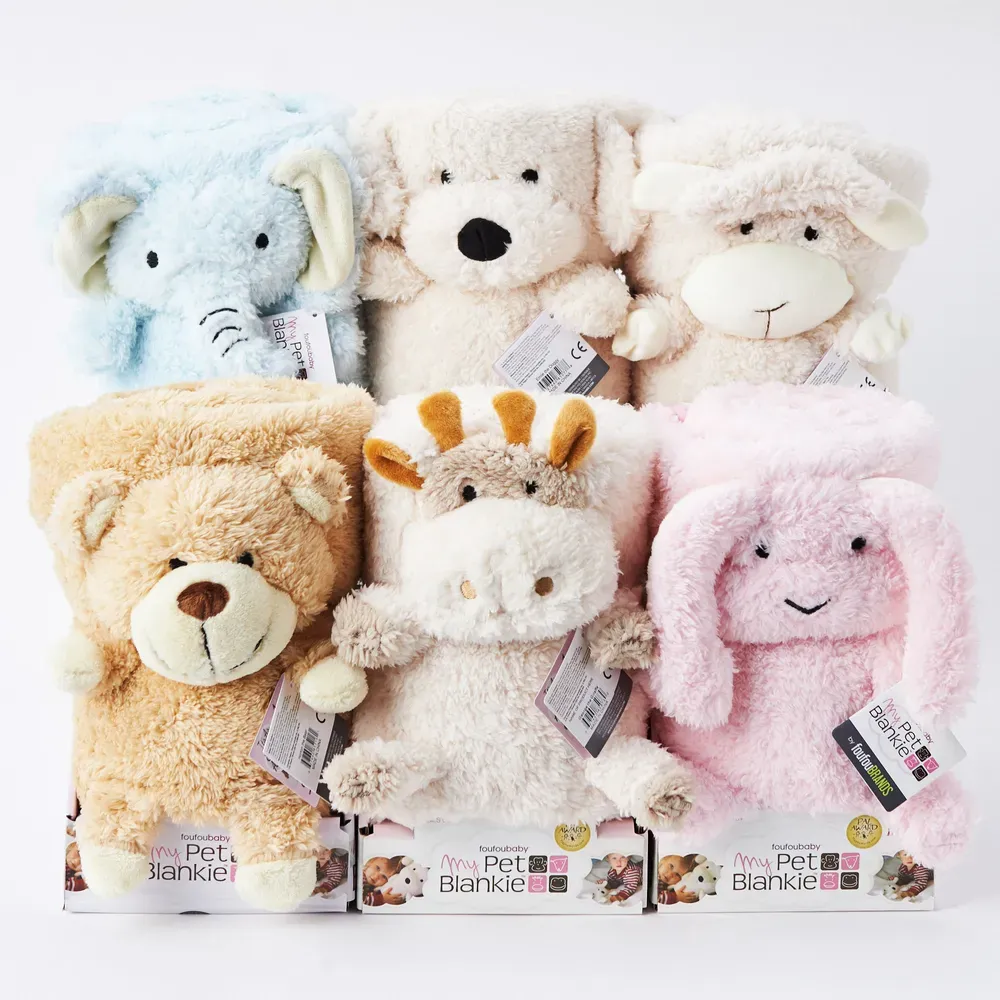 大口注文・法人のお問い合わせはこちら表情豊かなかわいい動物たち。ボールを転がして動物さんのピンを倒すと、中の鈴が優しく鳴ります。 ふわふわと優しい素材と柔らかな色彩の布おもちゃなので、ご出産祝いやファーストトイにぴったりです。 「狙ってボールを投げる→ピンにあたる→ピンが倒れる」といった流れで、集中力を養います。ピンを倒したときの達成感も味わえます。