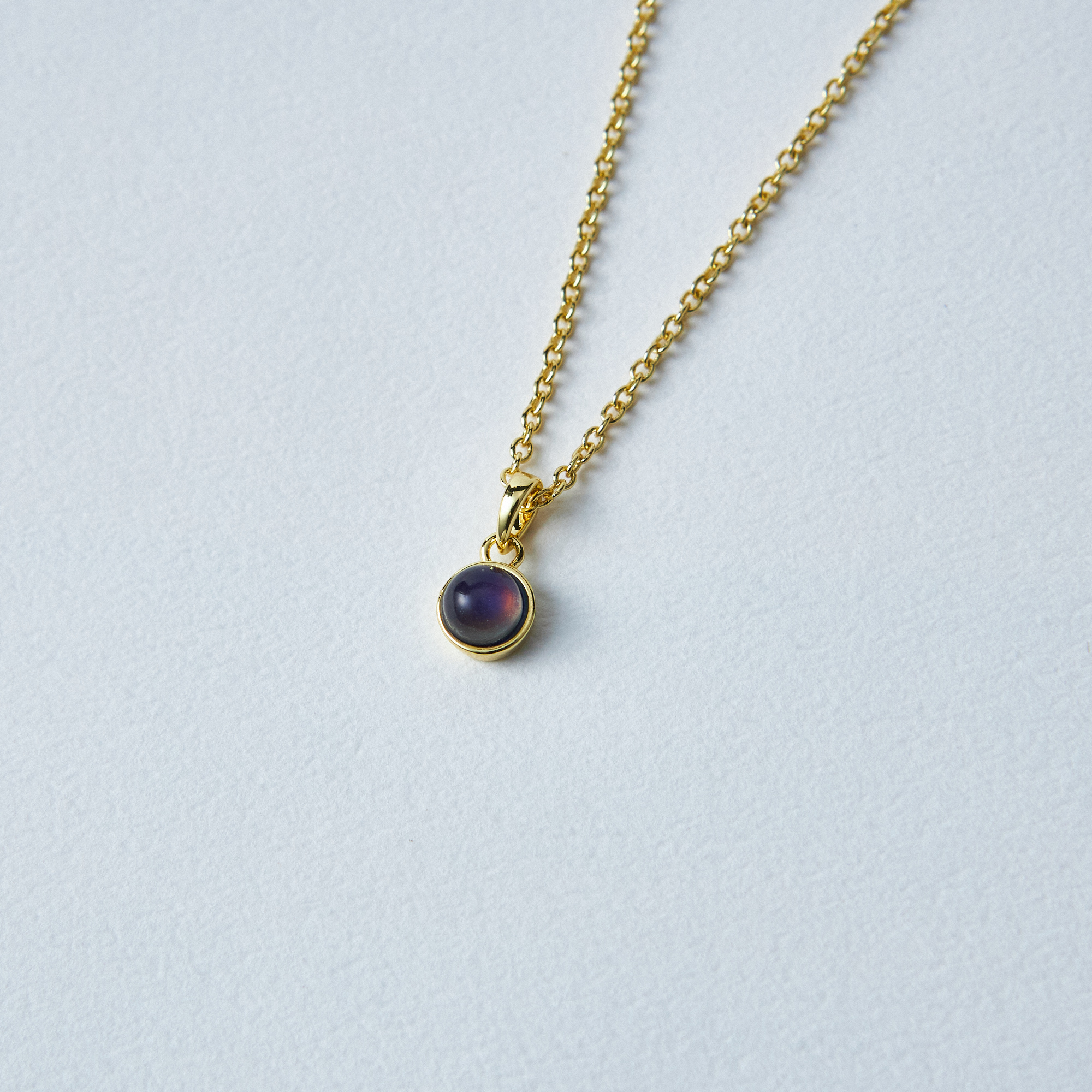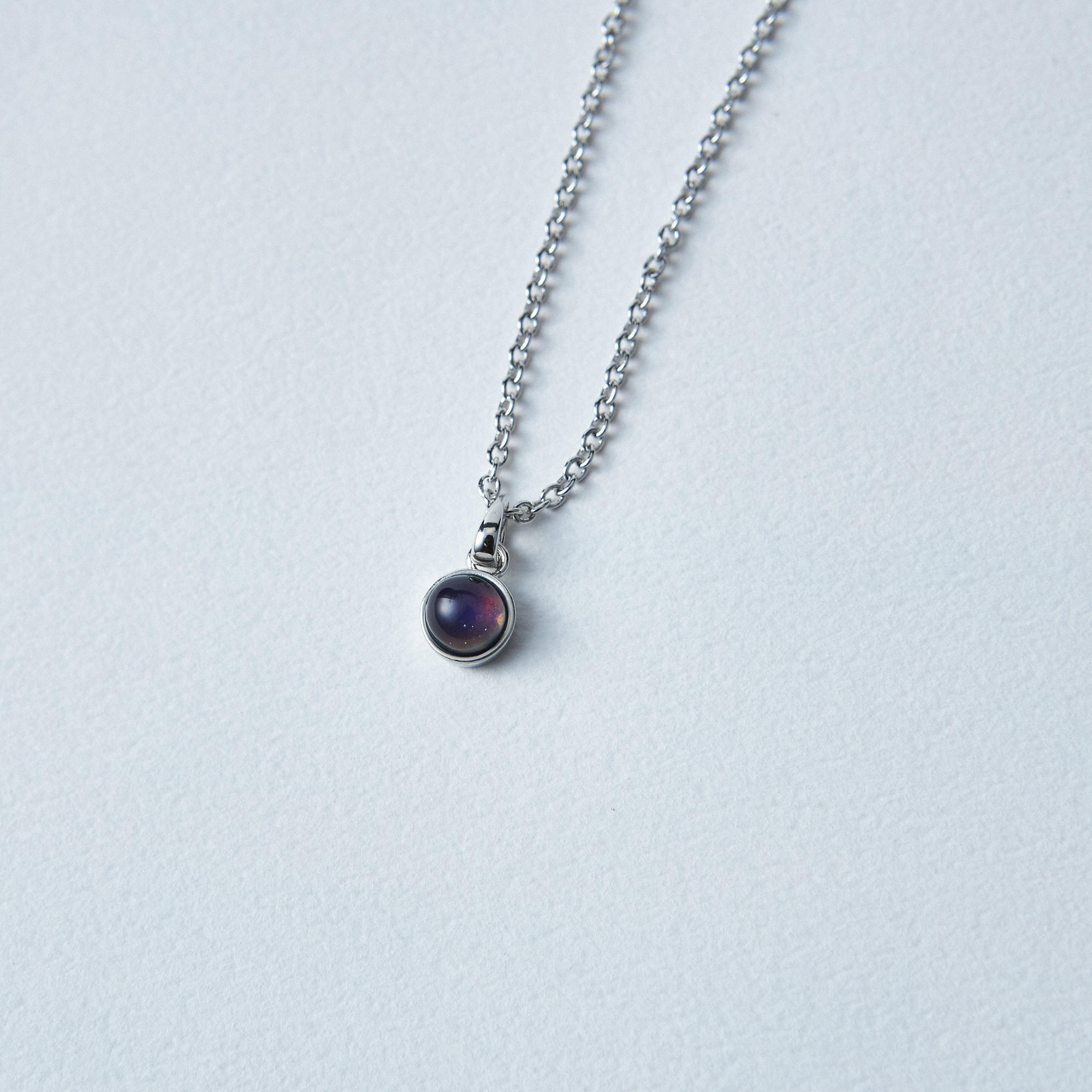 外気の温度や、着用する際の体温によって、モチーフ部分の色が変化します。 濃いブルー・グリーン・パープル・ブラウン・レッドなど、変化は様々。 その日の天気や体温による変化をお楽しみください。