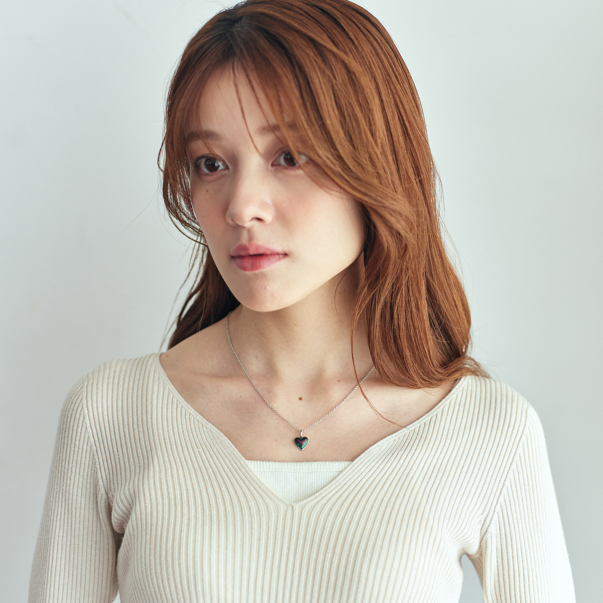 ネックレスは、マル・ハート・ツキのモチーフのネックレスでシンプルなデザインで日常にもマッチします。