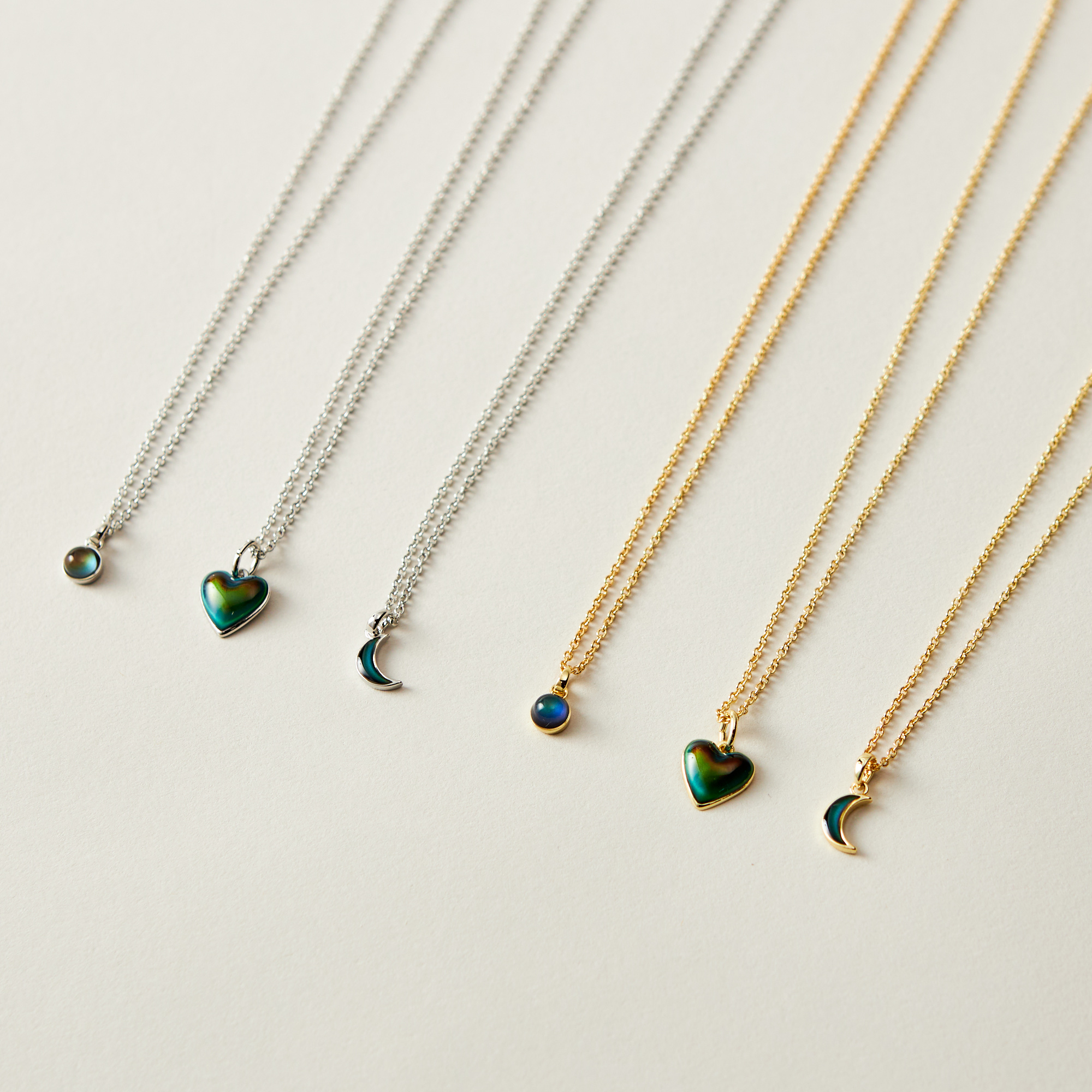 大口注文・法人のお問い合わせはこちら特殊な樹脂により体温や気温で色が変化するアクセサリー。 マル・ハート・ツキのシンプルなデザインモチーフなのでデイリーに使いやすいのもポイントです!
