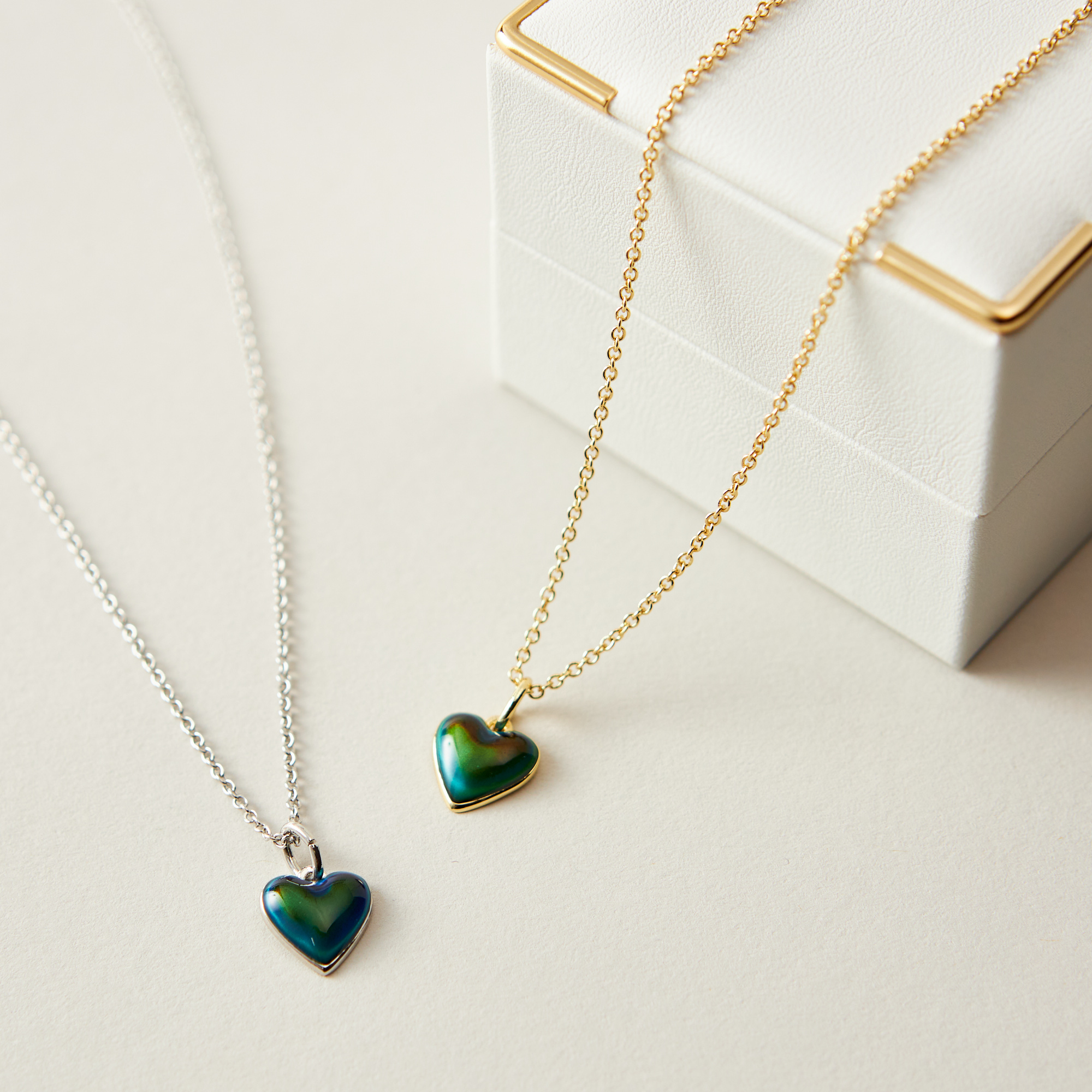 | 温度で色が変わるアクセサリー“ムードネックレス” | 【素材】 合金、変更性液体、樹脂 【原産国】 中国 【本体サイズ】 マル:全長45cm、モチーフ0.6cm ハート:全長45cm、モチーフ1cm ツキ:全長45cm、モチーフ1cm 【本体仕様】 ツキのみアジャスター付き 【外装サイズ(ジュエリーボックス)】 幅73mm×奥行73mm×高さ60mm 直方立方体 |