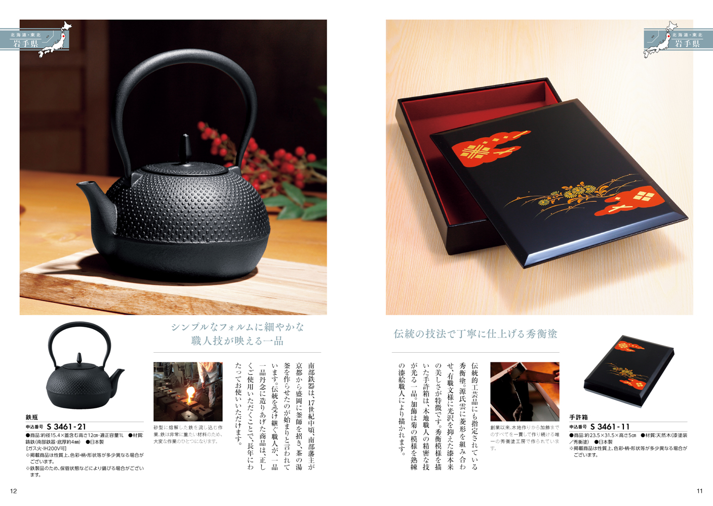 このカタログでは、各エリアごとに絶景ポイントを紹介しています。壮大な海や砂丘、日本の美しさを感じる寺院など、 大自然と歴史が生み出す美しい景色を思い浮かべながら、その地域ならではの伝統工芸品や美食をお選びいただけます。