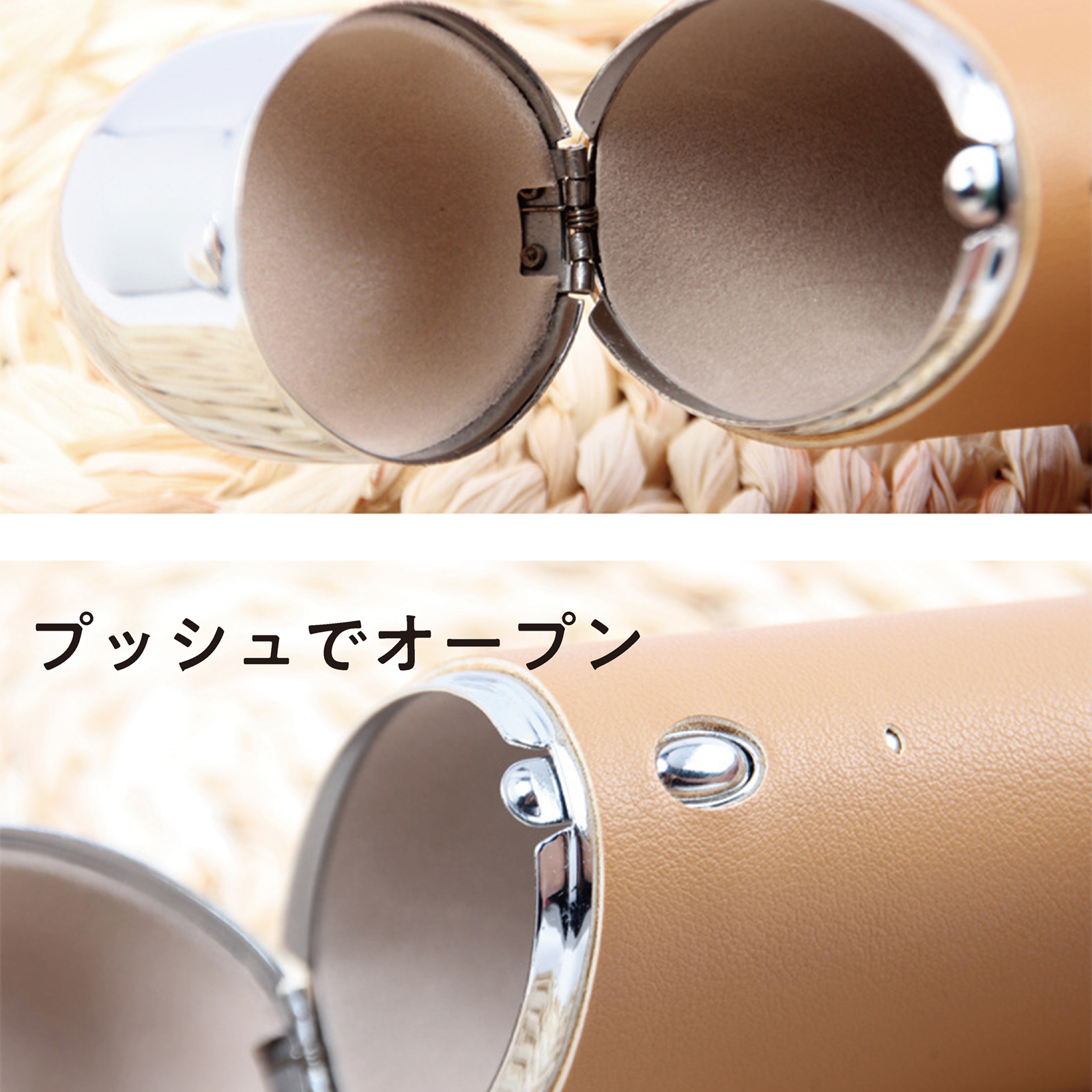 クロムメッキ加工のスチールケースにレザーを巻きつけたメガネケース。 スチールケースは楕円筒形を基本に全体的に角のないなめらかな曲面のデザインです。 手にしたときのほどよい重量感とBTの質感が心地よく、持ち歩くにもちょうど良いサイズ。