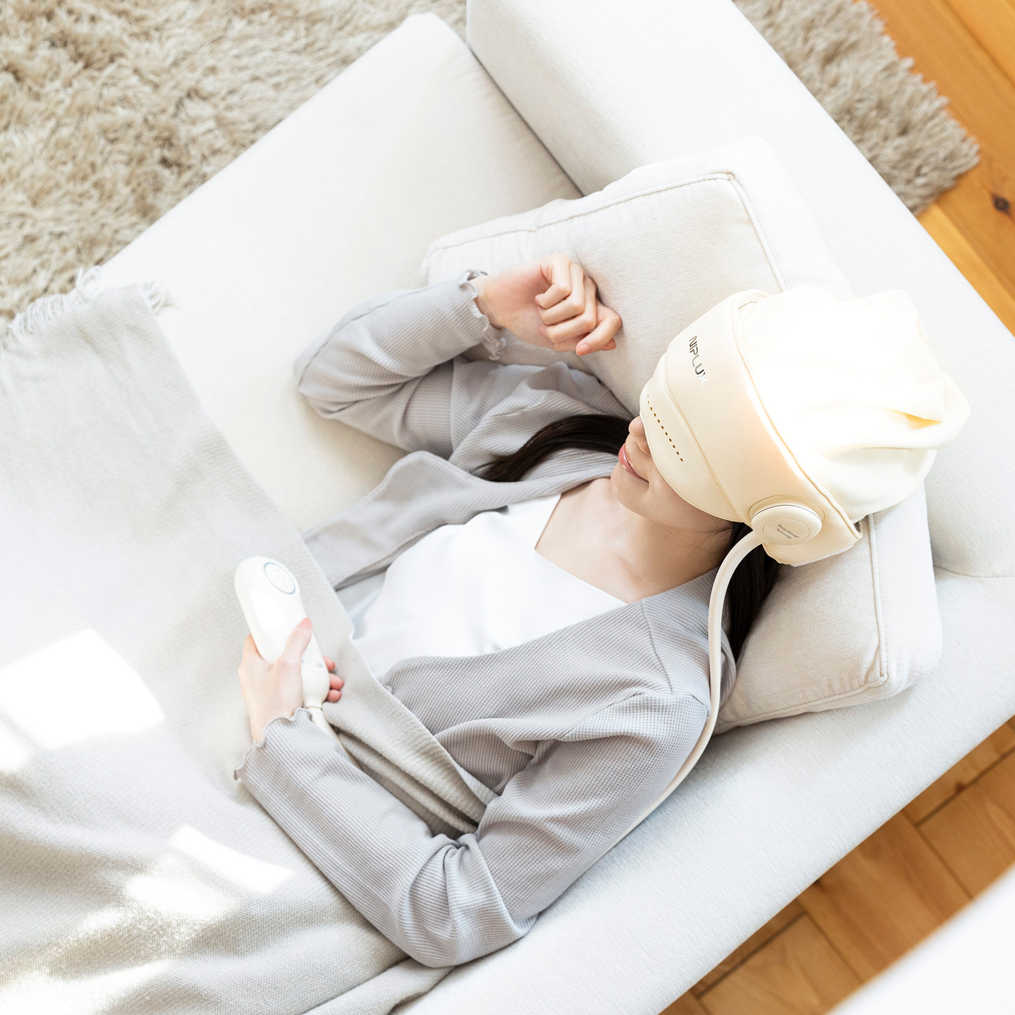 目元・頭同時ケアで極上リラグゼーション体験。エアバックにより包み込まれる感覚と、温熱による暖かさで毎日忙しいあなたに「Cill Out」気分の極上体験を提供します。