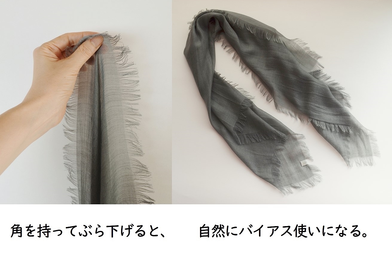ウール、カシミヤは防縮加工が施してあります。 そのため、ヘビーローテーションで使っても、ご自宅で気軽に洗っていただけます。 また、糸の表面が滑らかなので、チクチク感がありません。 「とろけるような肌触り」が、このストールの最大の魅力なのです。 ※手洗い後、自然乾燥させた場合、染色の際についた皺が現れます。 アイロンを掛けると目立たなくなります。
