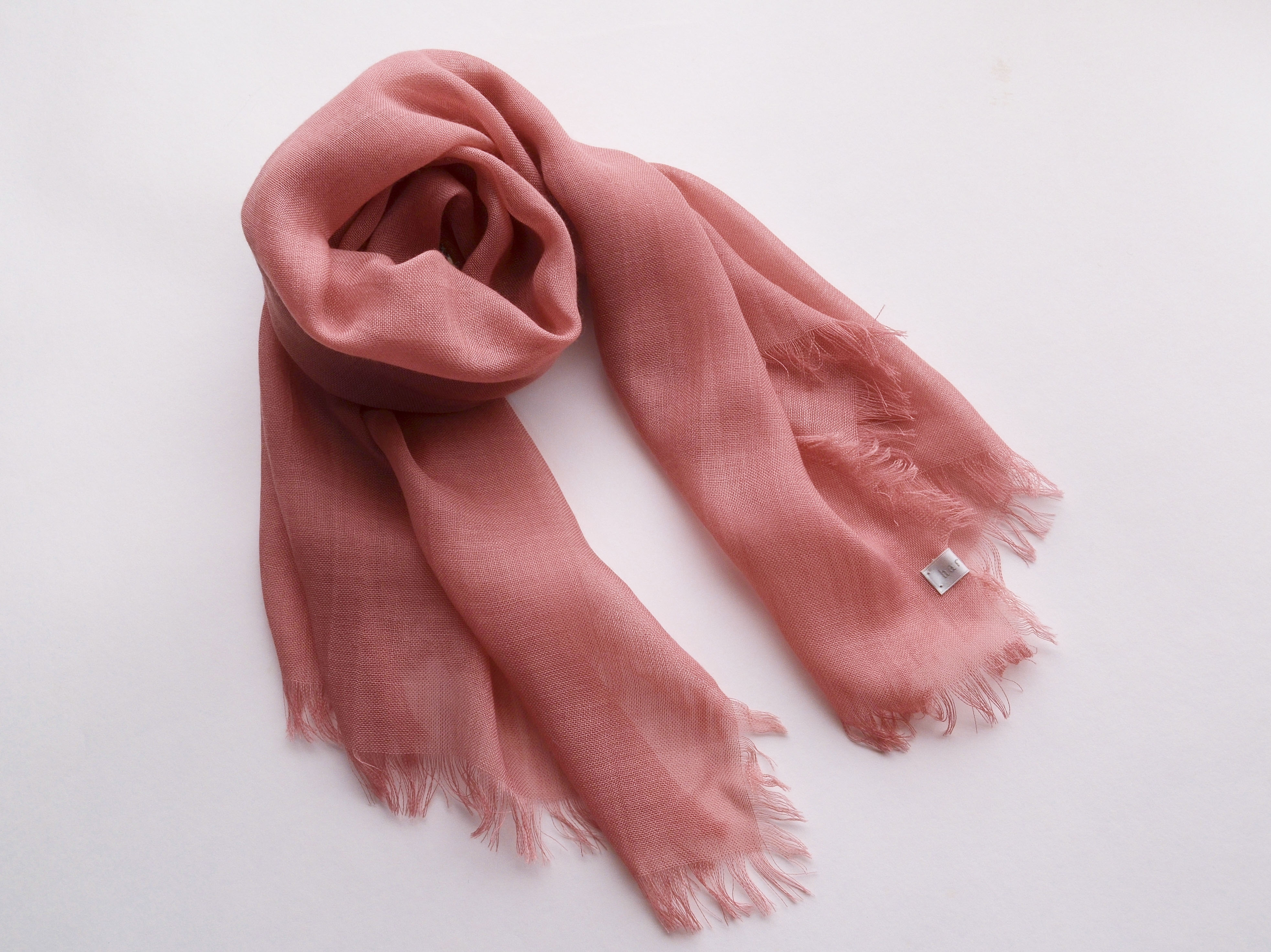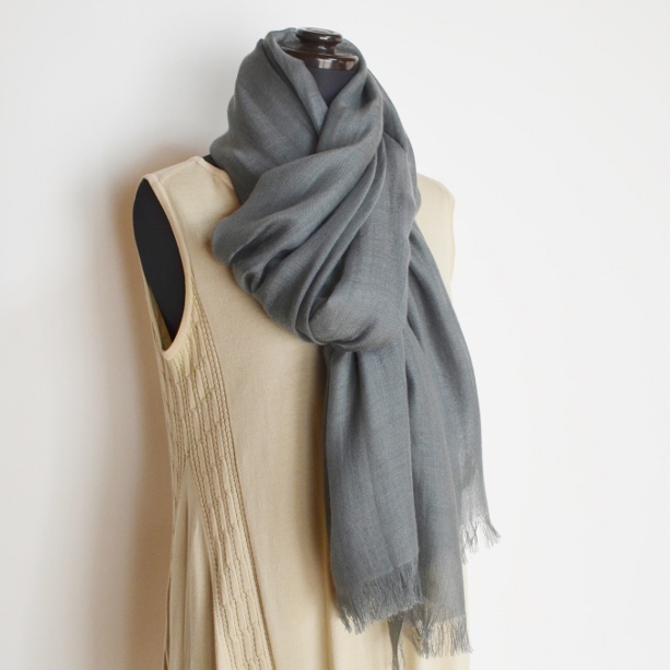 ウール、カシミア、シルクをほぼ同量使った、小振りのストールです。