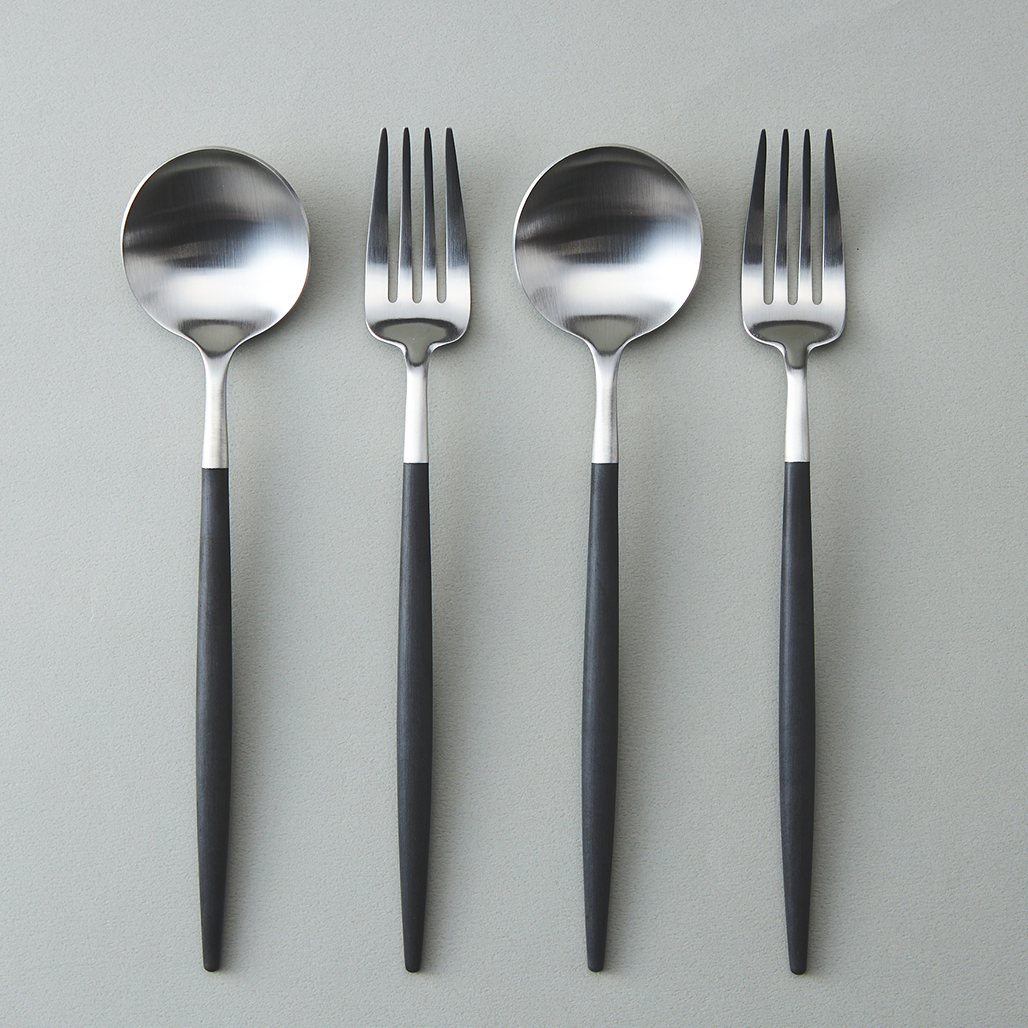 | ゴアブラック×シルバー ディナーペア4本セット | テーブルスプーン×2 テーブルフォーク×2 |