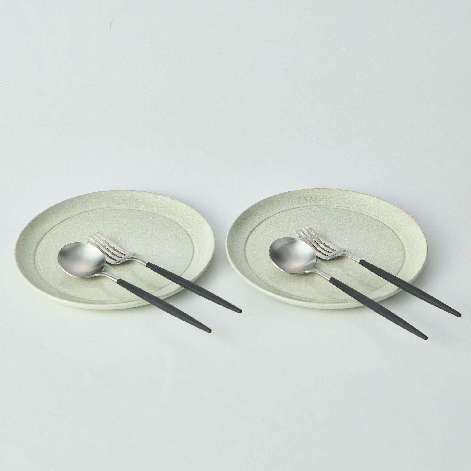 ポルトガルのカトラリーメーカー「クチポール」のカトラリー4本と、調理をしてそのままテーブルにサーブできる鍋が有名な「Staub(ストウブ)」のプレート皿のギフトセット。普段使い用としてはもちろん、新生活を始める方や結婚される方へのギフトとしてもおすすめです。