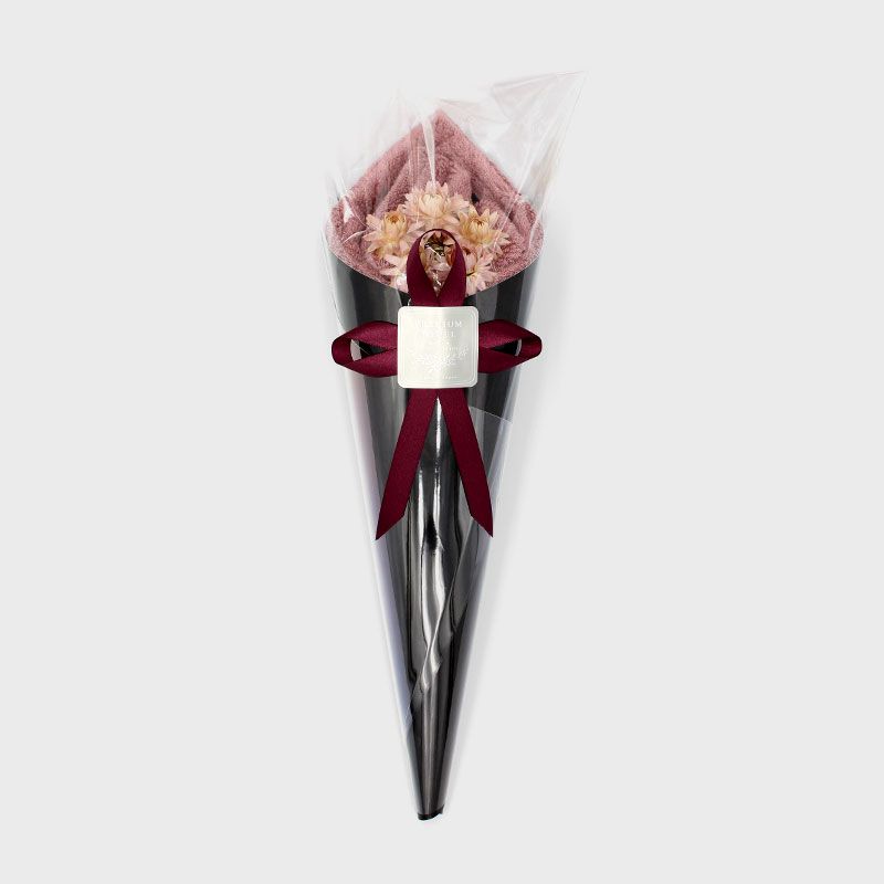 大口注文・法人のお問い合わせはこちら艶のある濃色に金色のMAX MATERIAのロゴをアクセントとした高級感のパッケージ。 ドライフラワーと同系色のタオルのカラーを選べば”大人な雰囲気”に、反対色を選んで”カジュアルな雰囲気”にもなります。 高級感のあるデザインでテイストを選べるのも、タオル花束の人気の一つです。