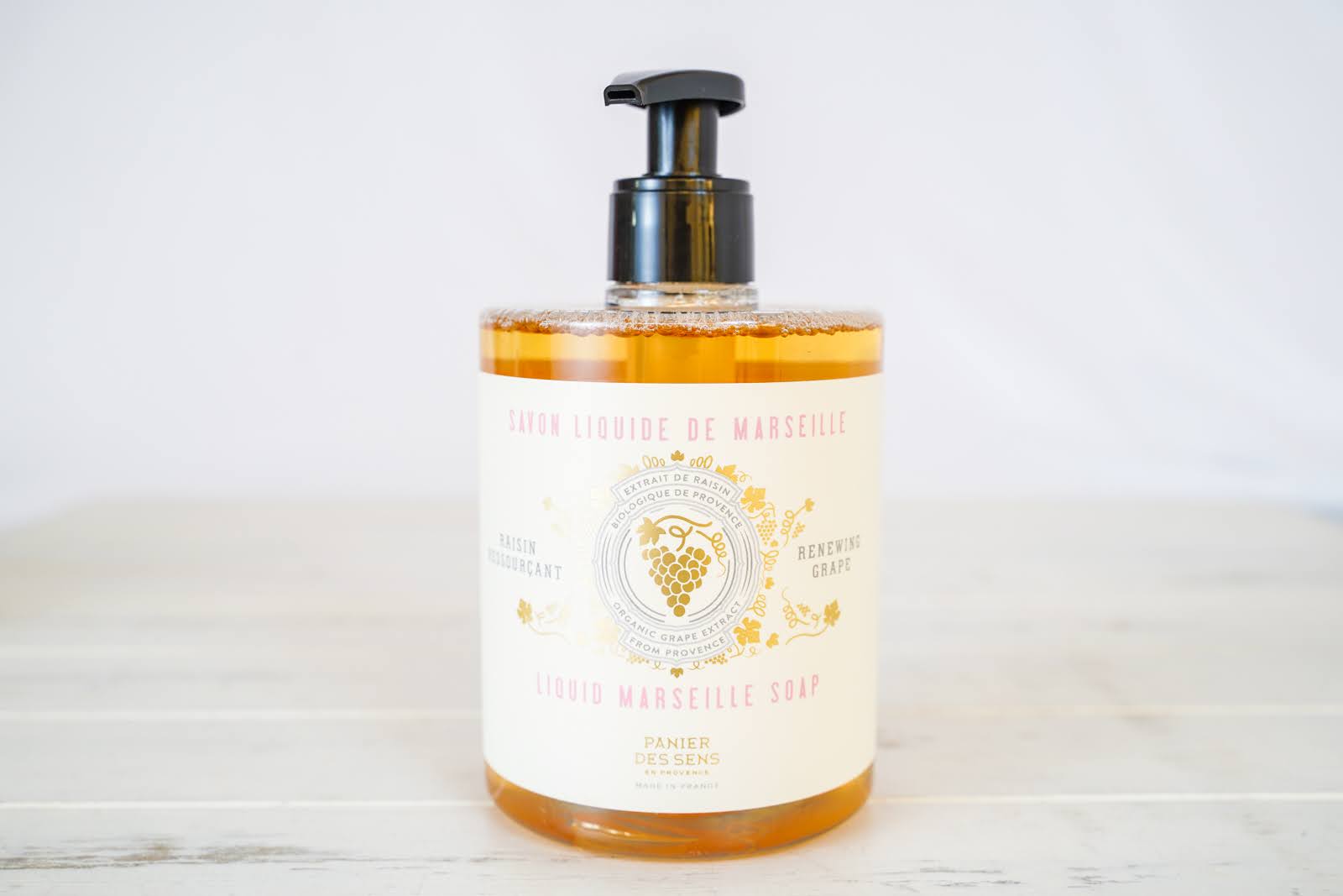 マルセイユソープの伝統的な製法に基づき、ベジタブルオイルのみを使って 作られた豊かに香り立つリキッドソープです。天然由来成分を97%配合しております。 保湿成分である、グレープシードオイル、グレープエキス、グレープリーフエキスを 配合しており、柔らかくクリーミーな泡立ちで優しく洗い上げます。