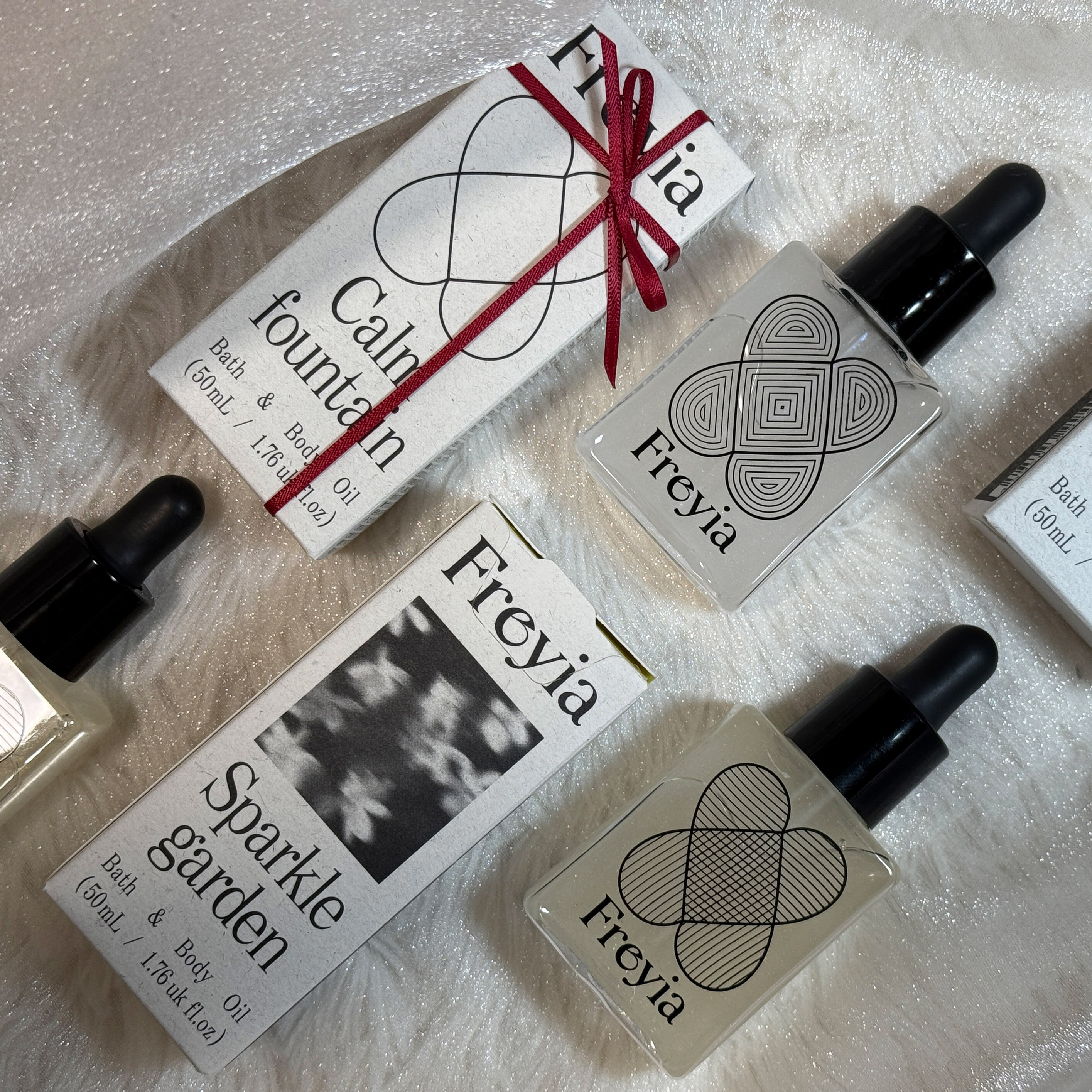 ボディオイルや入浴剤には珍しく、「トップ・ミドル・ラスト」と、時間ごとに変化する香りを調香しつくりあげました。 さりげなく香らせたい、スプレーできないときなどに、香水感覚で使用いただけます。
