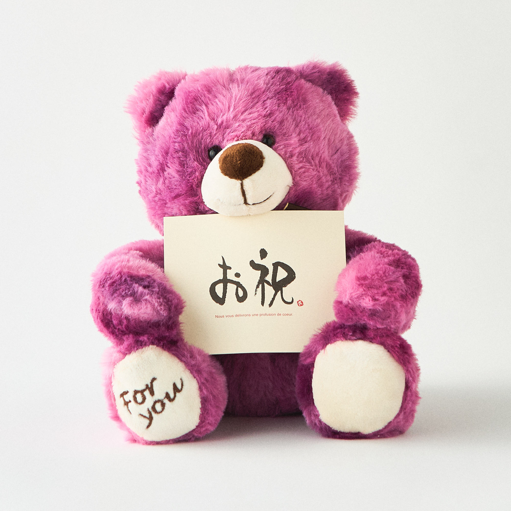 大口注文・法人のお問い合わせはこちら古希・喜寿・卒寿のお祝いにぴったりな紫色のくまのぬいぐるみです。 豪華なお祝いメッセージカードを手に持たせてお届けいたします。 あたたかみのある筆文字で、ご長寿のお祝いの記念に特別感のあるギフトを演出します。 ※メッセージカードはテディベアに固定しておりません。輸送中、ベアのひざの上からずれてしまう場合もございます。予めご了承ください。