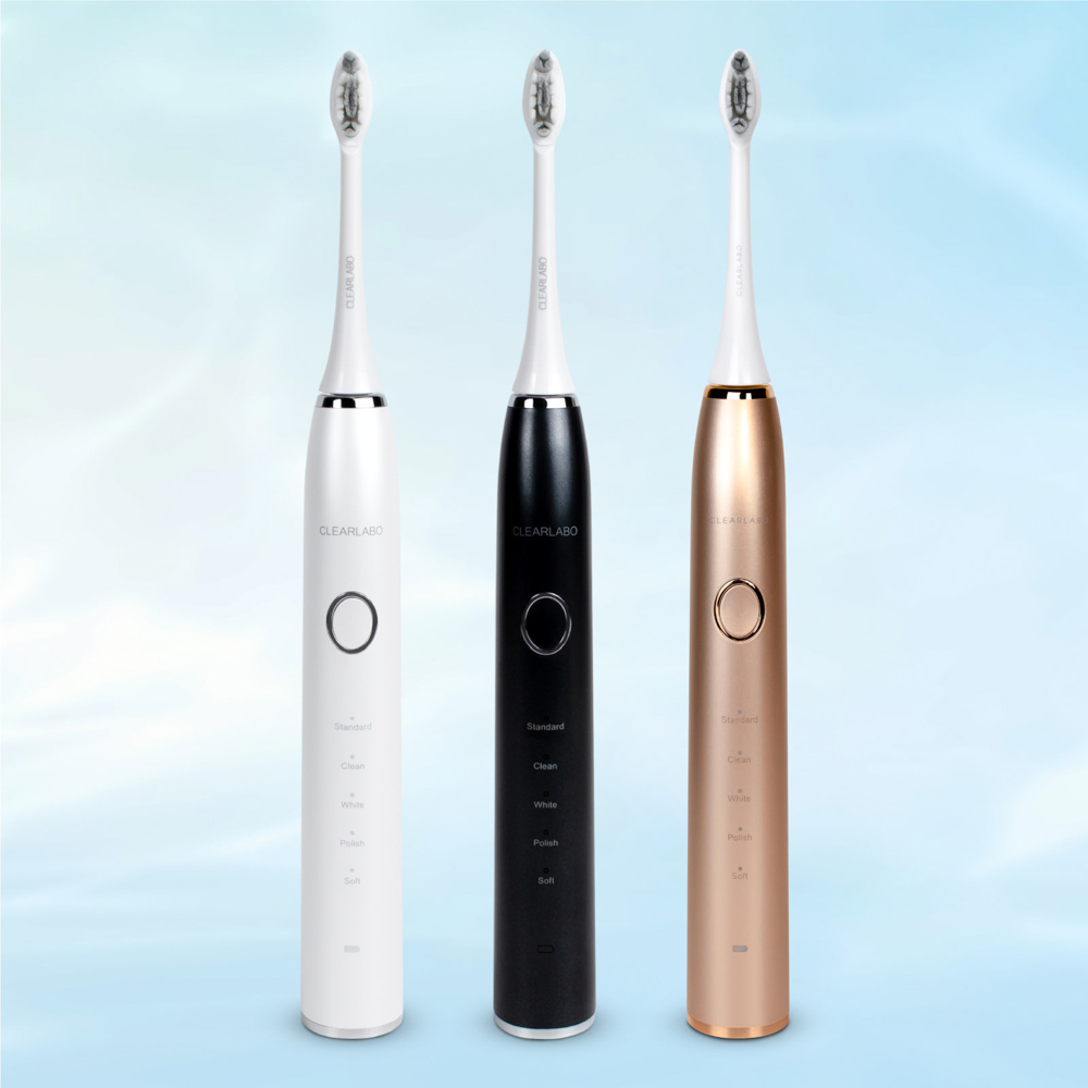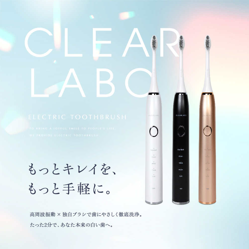 大口注文・法人のお問い合わせはこちらCLEARLABO(クリアラボ) 電動歯ブラシ 。人間工学に基づき設計された、握りやすく、使用しやすいデザインで、約136gと超軽量設計。