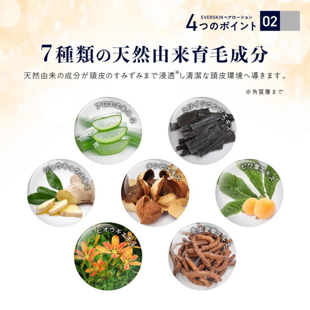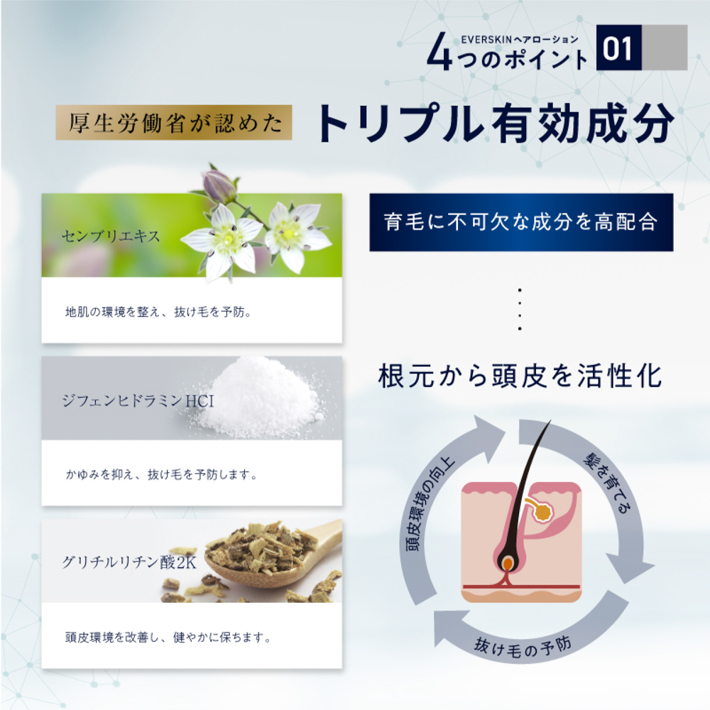 効果効能 育毛、薄毛、かゆみ、脱毛の予防、毛生促進、 発毛 促進、ふけ、病後・産後の脱毛、養毛