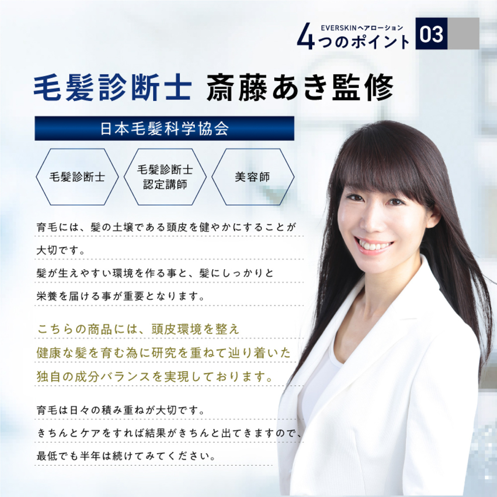 毛髪診断士監修の育毛剤。健やかな髪は、健やかな頭皮から。不足しがちな頭皮に潤いを与え*、育毛成分により、正しい頭皮環境へ。