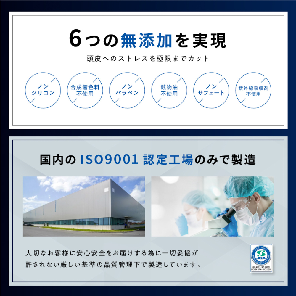 ノンシリコン、ノンパラベンはじめ、6つの無添加を実現。頭皮へのダメージを最大限に抑えます。頭皮マッサージ等のヘアケアとしてお使いください。