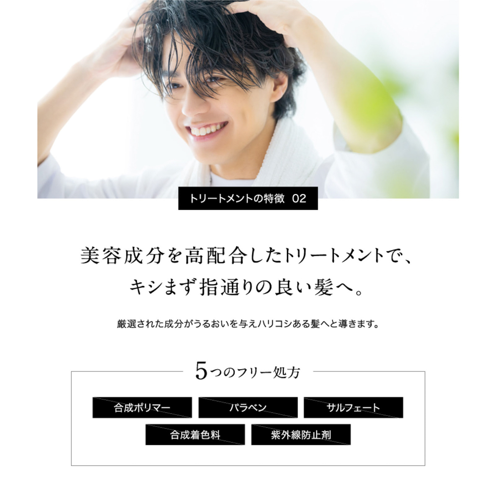 厳選した「14種のボタニカルオイル」と「4種の海洋由来成分」と「2種の美髪成分」を高配合したスカルプトリートメントで髪の内部にうるおいを与えて補修。ハリコシある美しい髪へとサポートします。