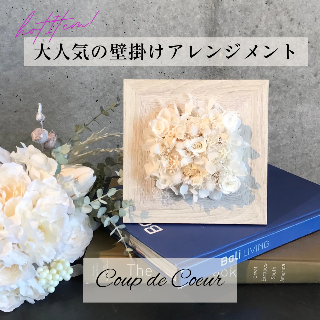 壁掛けタイプのアレンジメントは空間に立体感を与えるインテリアアイテムとして人気です。また、置き方としても使用できる2wayタイプは使い方の幅が広がるため便利です。特別な記念日・お祝い事のプレゼント・リビングや寝室、玄関などご自宅用にもおススメです。
