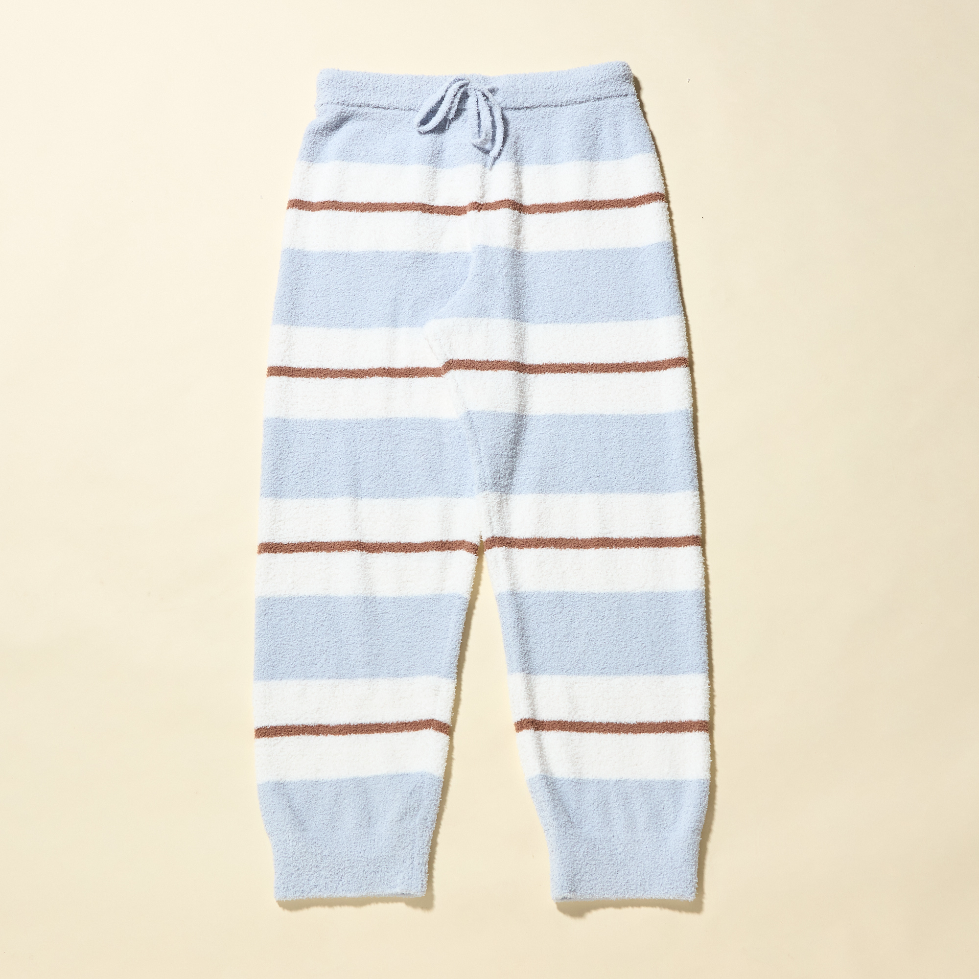 ボーダーの裾絞りロングパンツ。