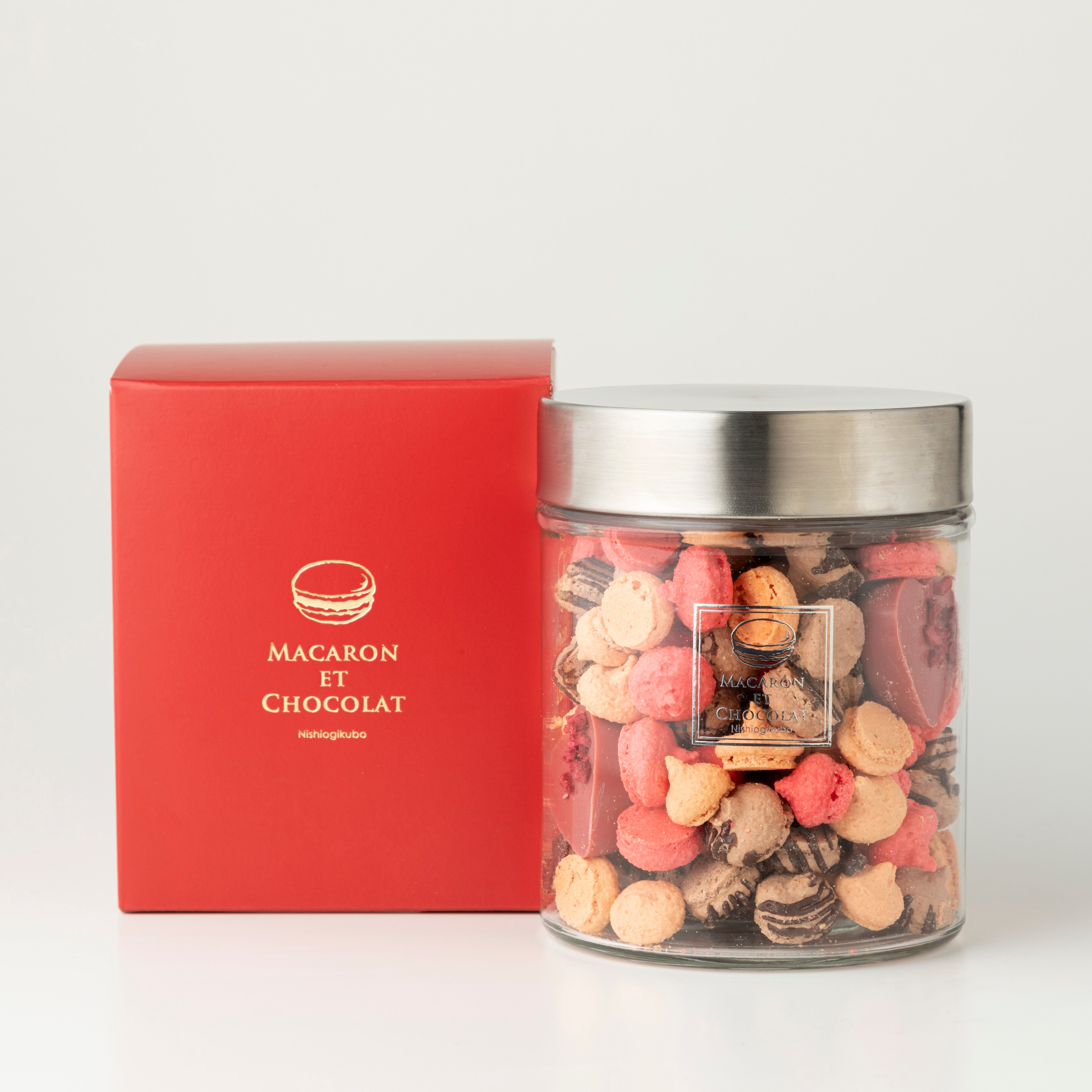 【MACARON ET CHOCOLAT(マカロンエショコラ)】は2012年10月東京の西荻窪にオリジナルマカロン専門店として誕生しました。マカロンボーロはマカロンの生地を小さく絞り味付けをして焼き上げたサクサクの食感がたまらないスイーツ。バレンタインシーズンにピッタリのチョコ掛け限定フレーバーのマカロンボーロが数量限定で登場です。リユース可能なオリジナルガラスジャーに入れてお届け。