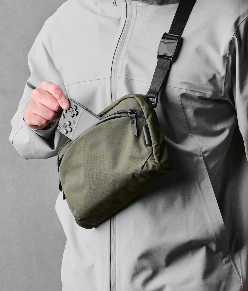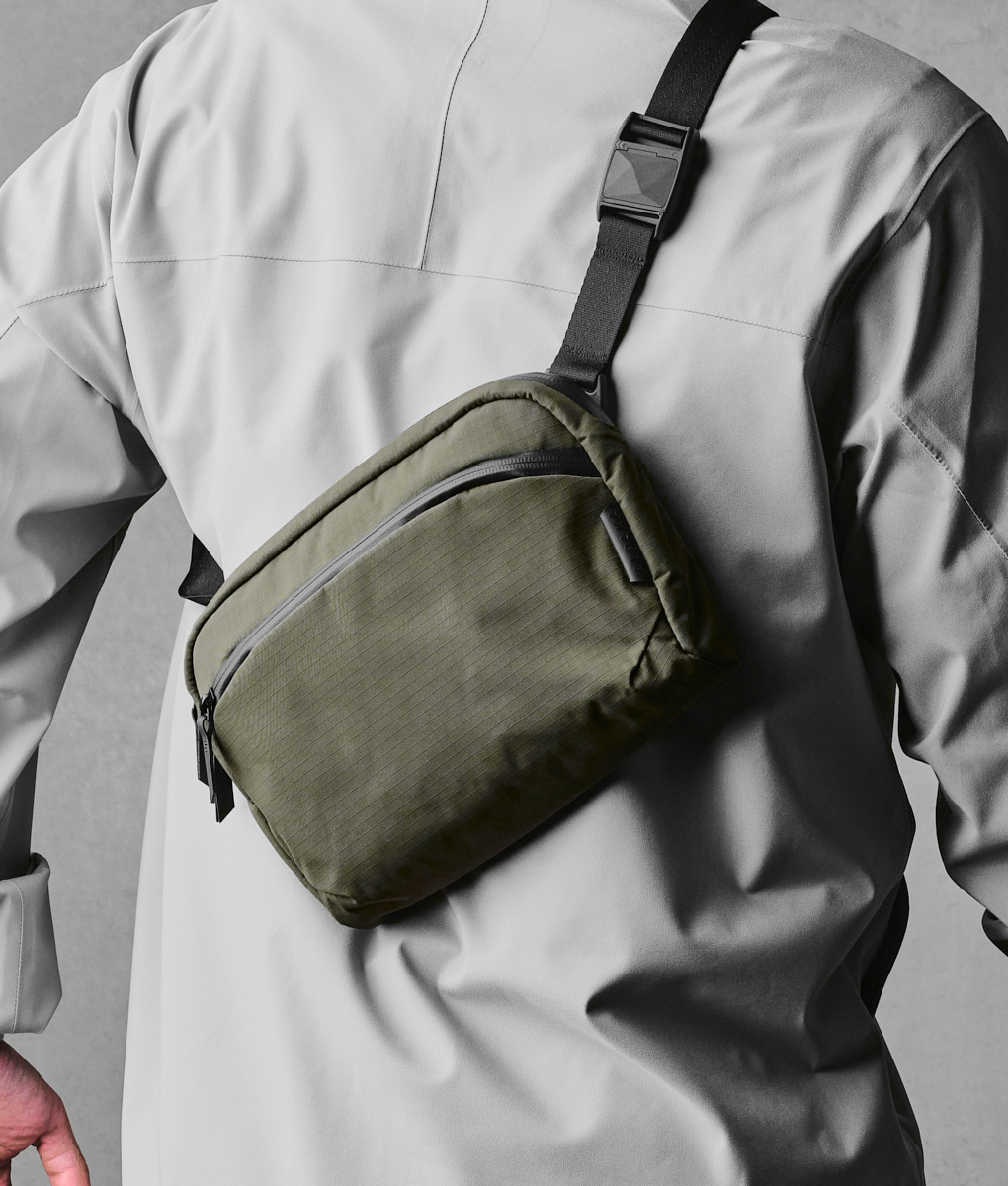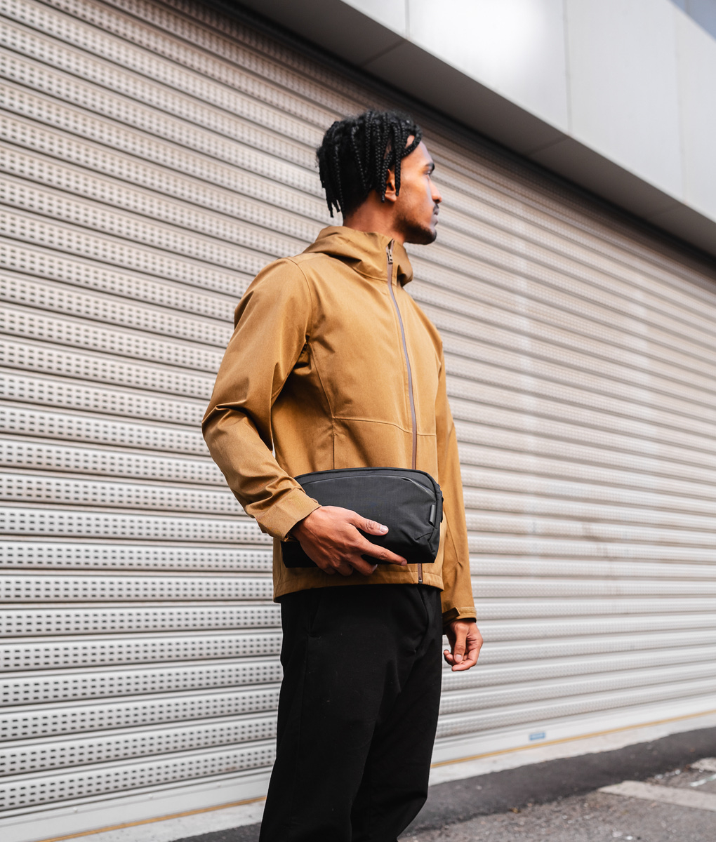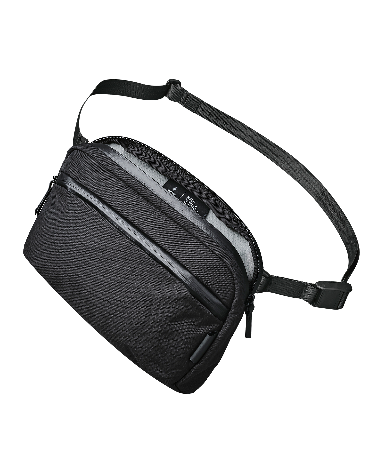 フライトスリングは簡単に折りたたんでスリングとして旅行に持ち運んだり、ショルダーバッグはもちろん、ストラップを取り外してスタイリッシュなテックポーチとして使用できます。