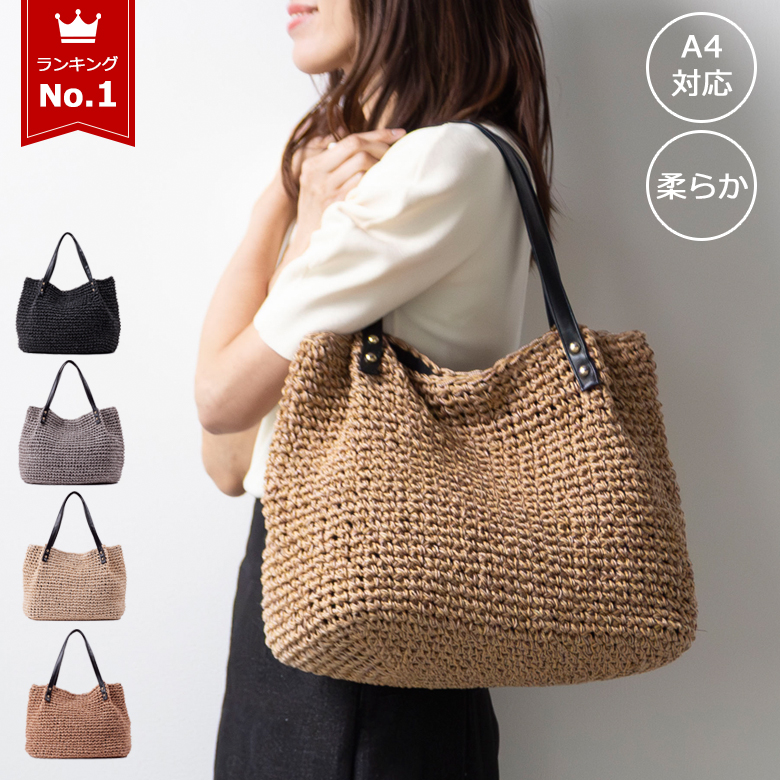 大口注文・法人のお問い合わせはこちらシリーズ累計8,210個販売の人気かごバッグ。 A4サイズもしっかり収まるサイズ。 荷物が多くてもしっかり収納できるので、ビジネスにもオススメです。