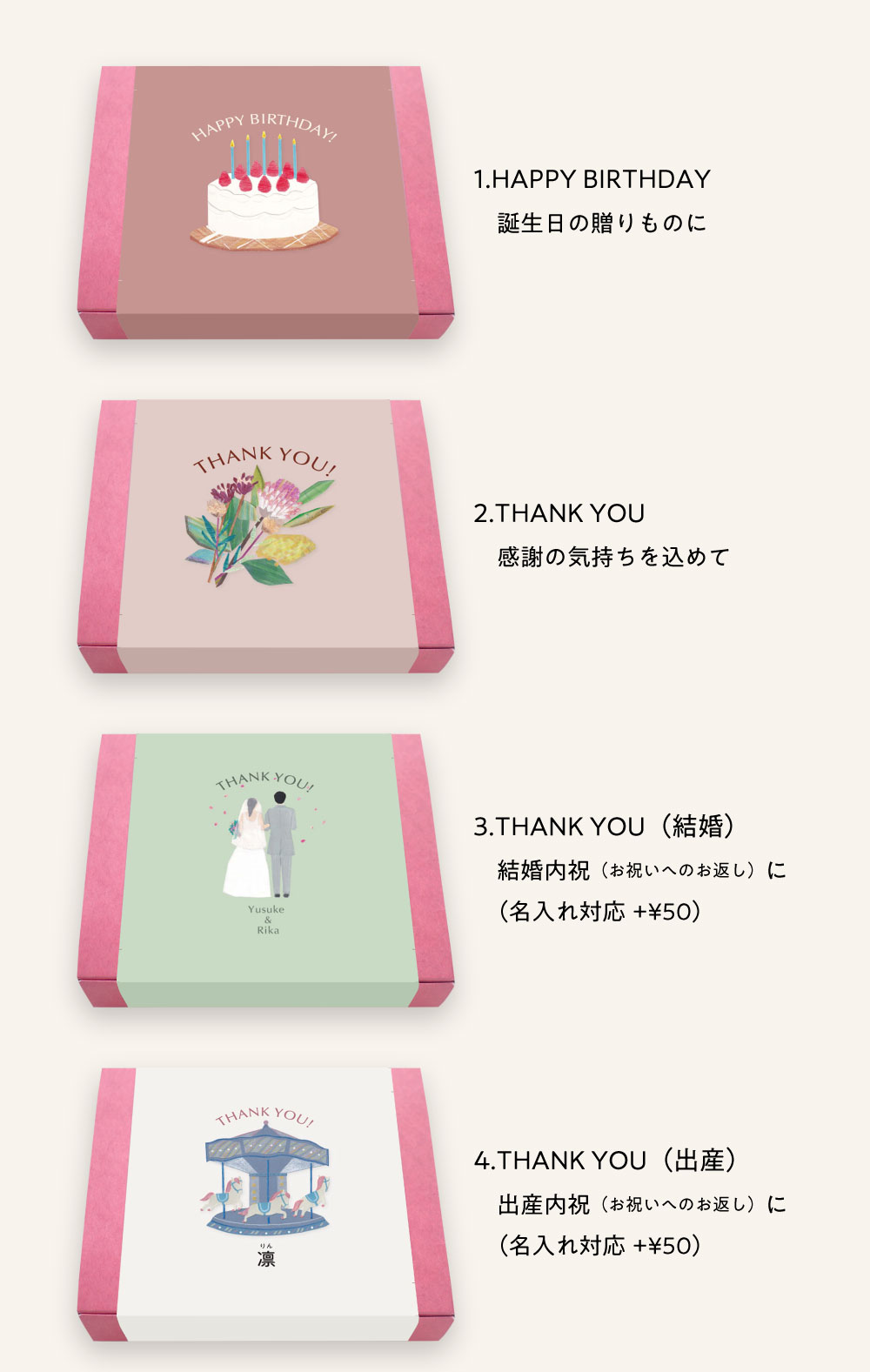 お誕生日プレゼントでのご利用に大変人気です。 女性へのギフトとしてよく選ばれるので、母の日やホワイトデーにもおすすめです。 無料でご希望の掛け紙やのし紙をお掛けしています。 (名入れは50円でのオプション対応となります)