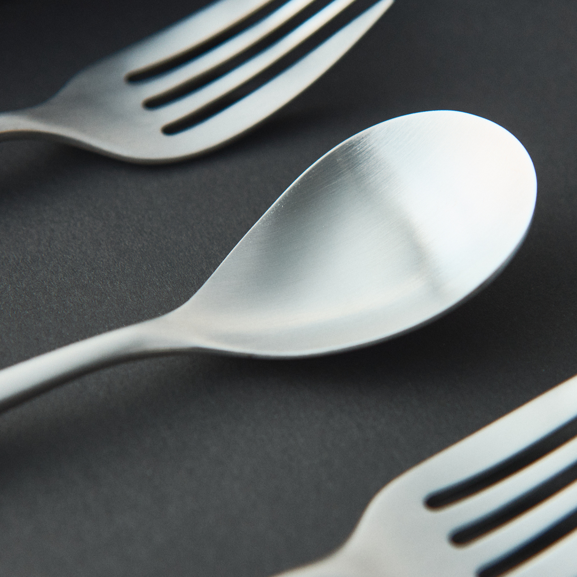 ハンドメイド研磨まで1本1本熟練の職人によってハンドメイドで作られています。 人の手によって作られたことによって柔らかなカーブや繊細な仕上げが可能となります。 ハンドメイドだからこそのあたたかみを感じられるカトラリーセットです。