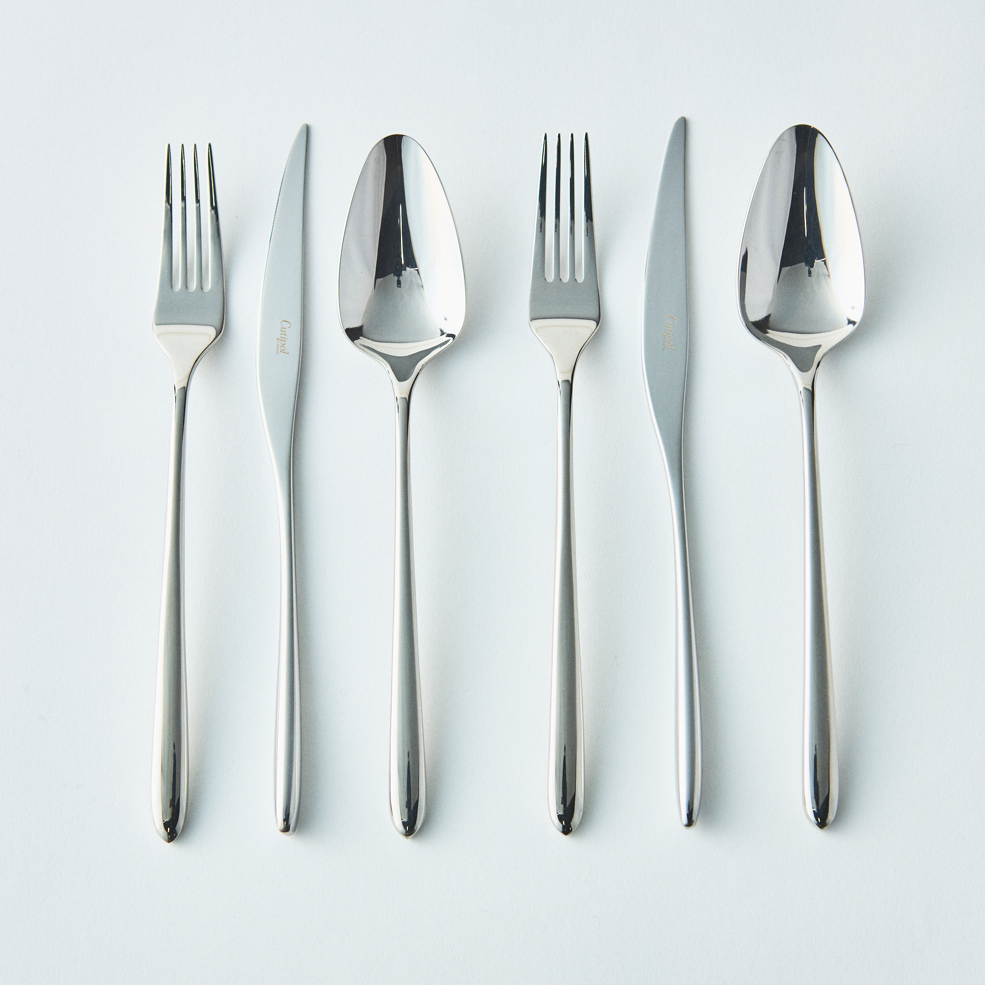 ポルトガルのカトラリーメーカー「クチポール」のアイレス・マテウス ミラーディナーペア6本セットです。ヴィンテージのカトラリーセットからインスピレーションを受け、深くて幅の広いスプーンや、長い歯先のフォークなど、洗練されたモダンなデザインの中にノスタルジーを思い起こさせる新しいモデルです。