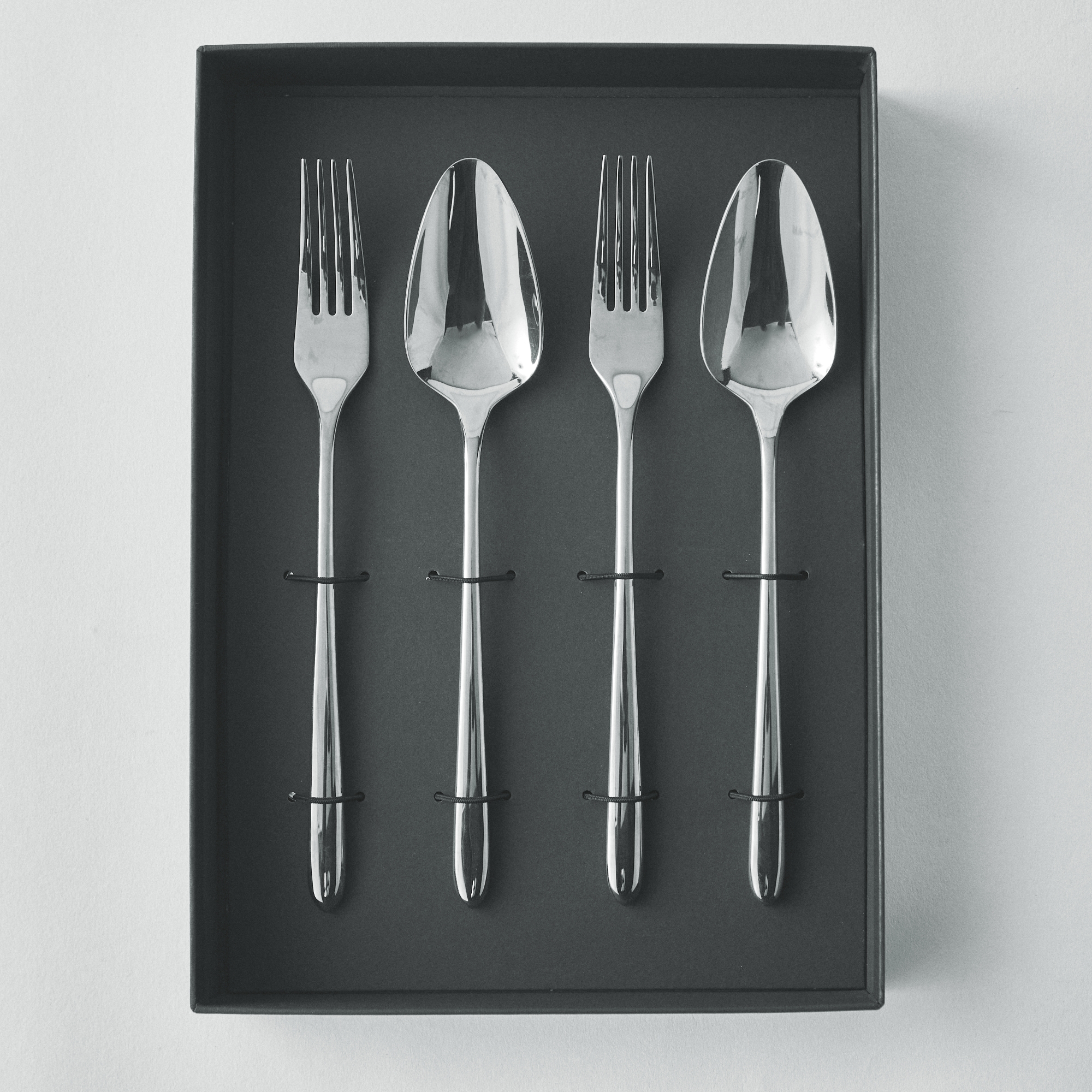 ポルトガルのカトラリーメーカー「クチポール」のアイレス・マテウス ミラーディナーペア4本セットです。ヴィンテージのカトラリーセットからインスピレーションを受け、深くて幅の広いスプーンや、長い歯先のフォークなど、洗練されたモダンなデザインの中にノスタルジーを思い起こさせる新しいモデルです。
